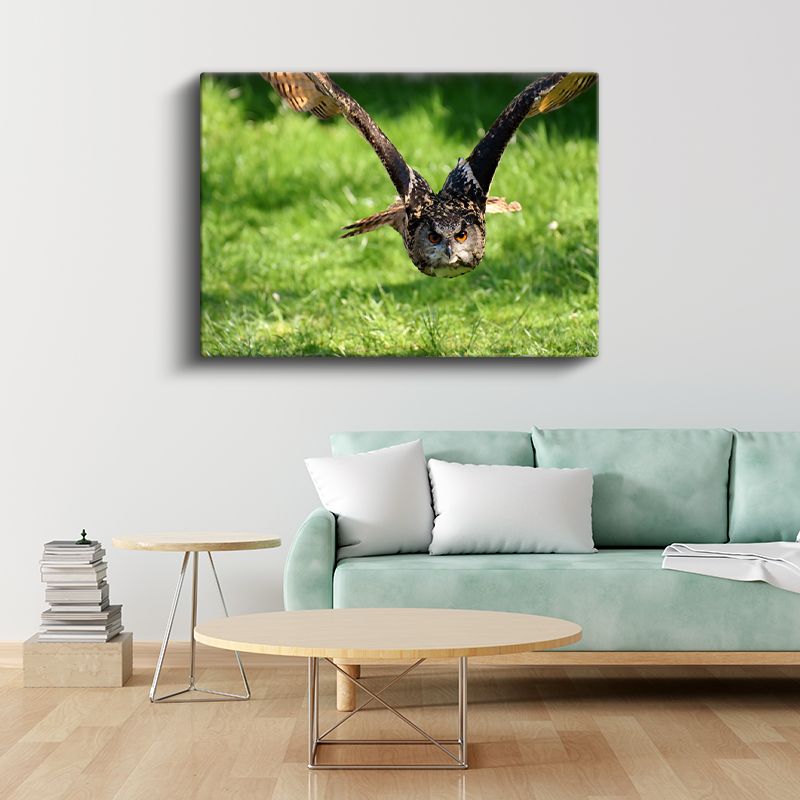Avcı Baykuş - Kanatları Açık Uçuş Anı Kanvas Tablo