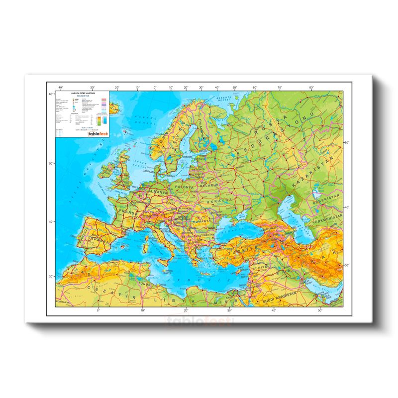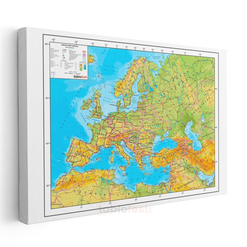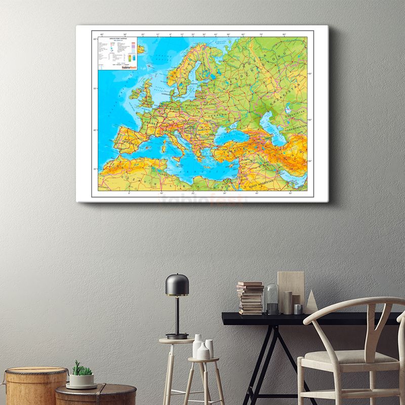 Avrupa - Fiziki Haritası Kanvas Tablo