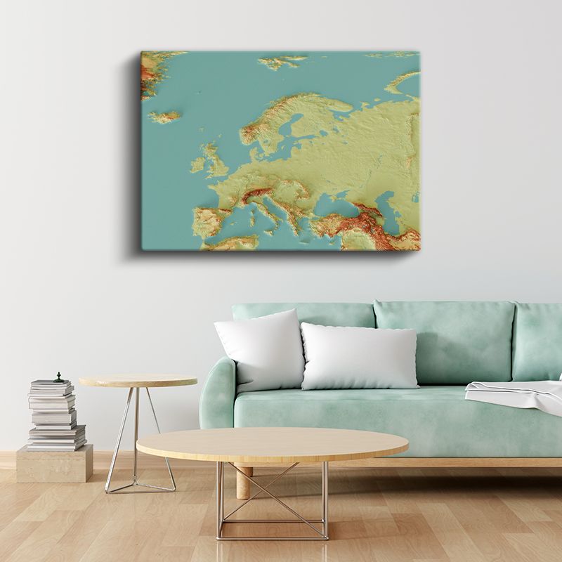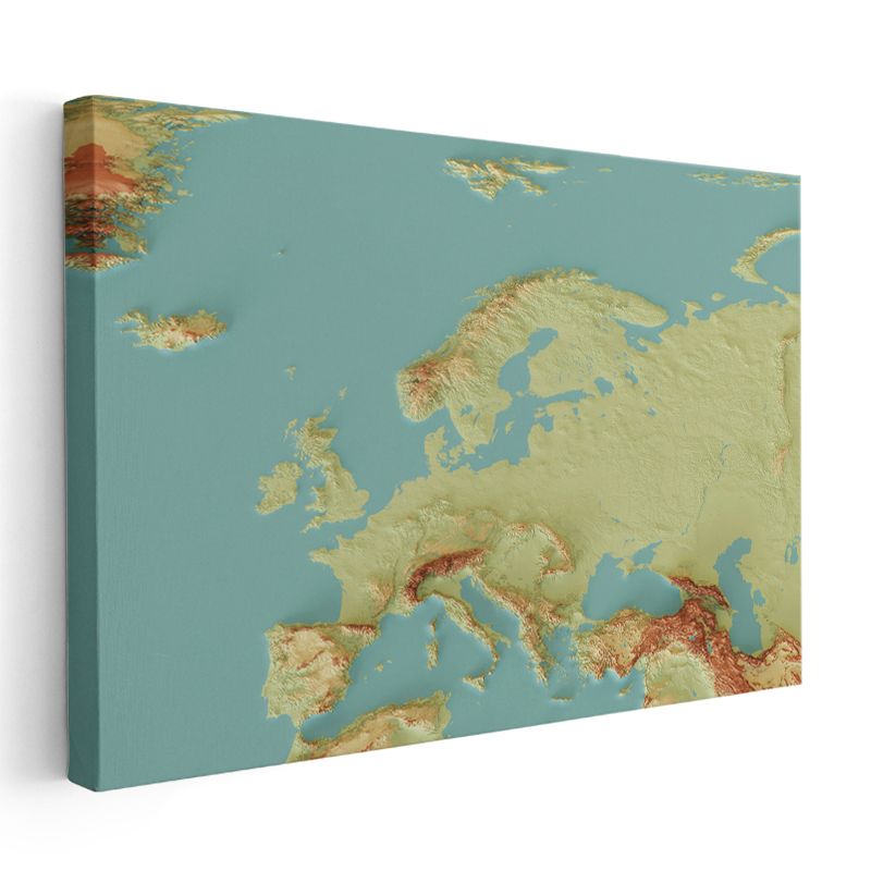 Avrupa - Fiziki Haritası Kanvas Tablo