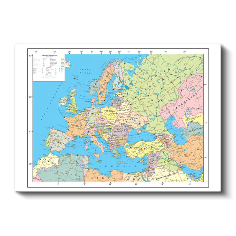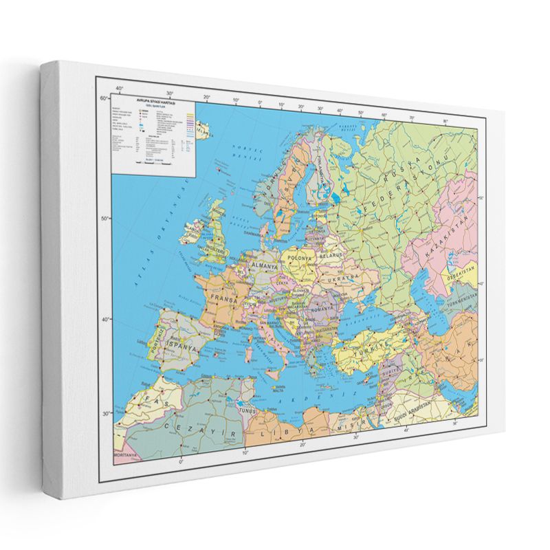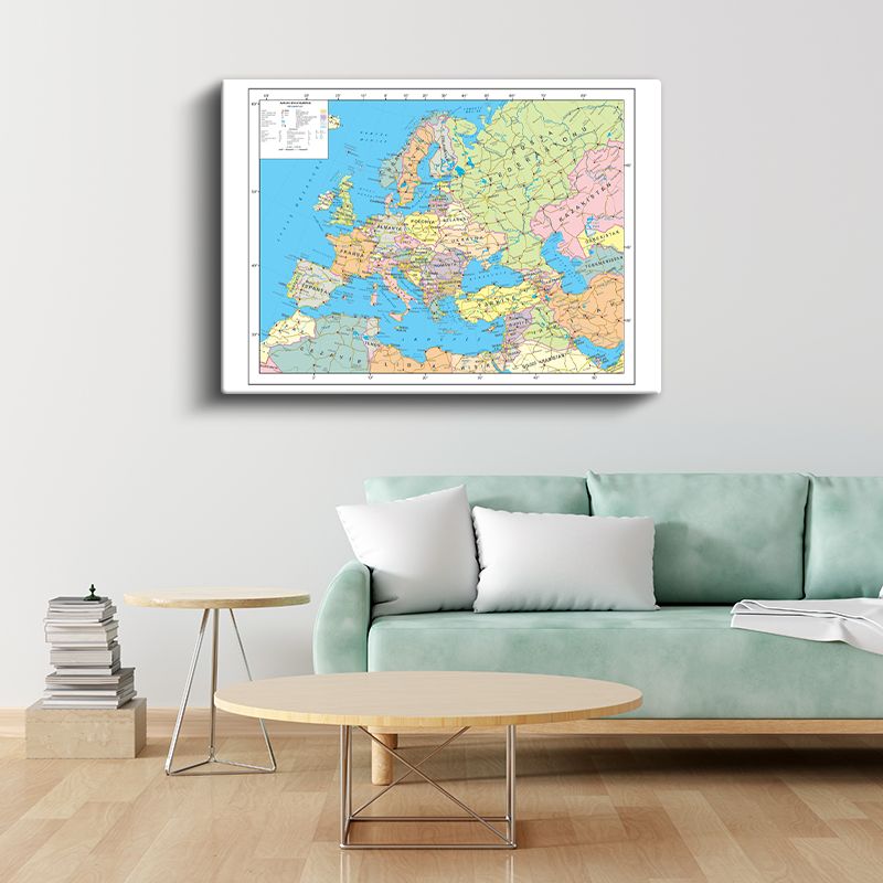 Avrupa - Siyasi Haritası Kanvas Tablo