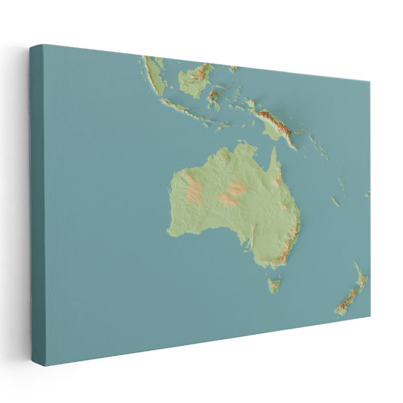 Avustralya - Fiziki Haritası Kanvas Tablo