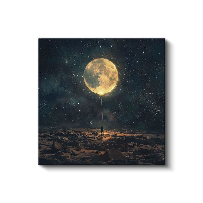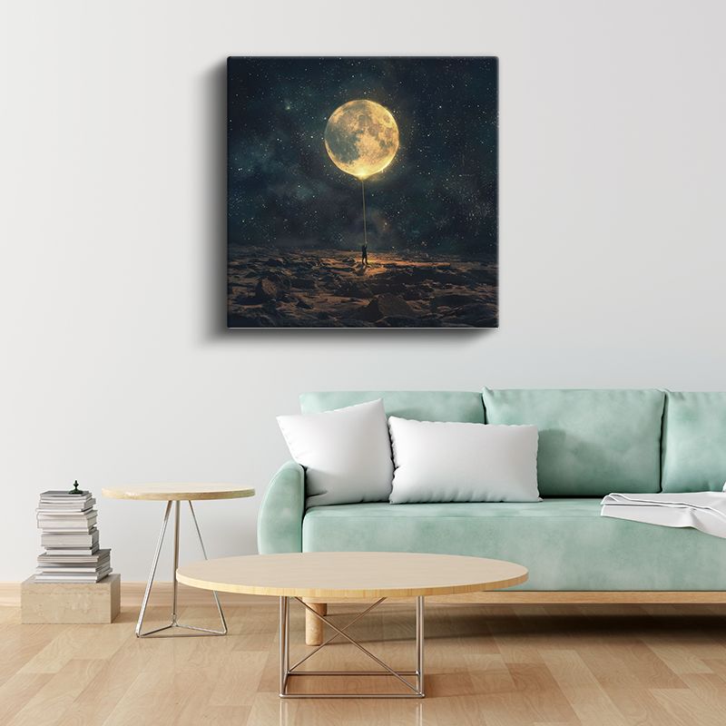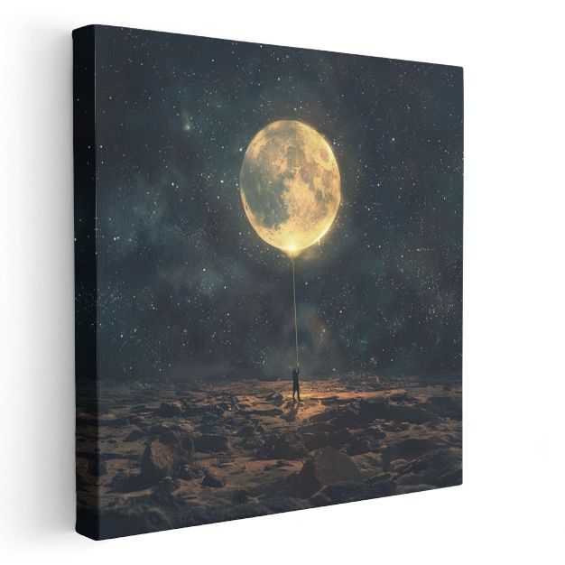 Ay Avcısı - Kozmik Işığı Yakalayan Yalnız Figür Kanvas Tablo