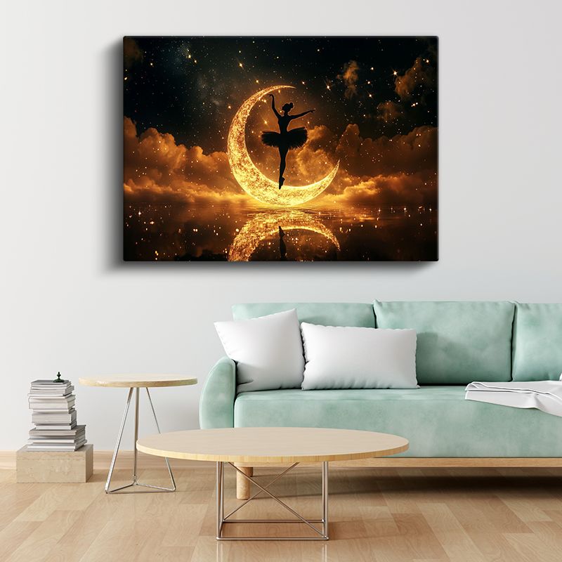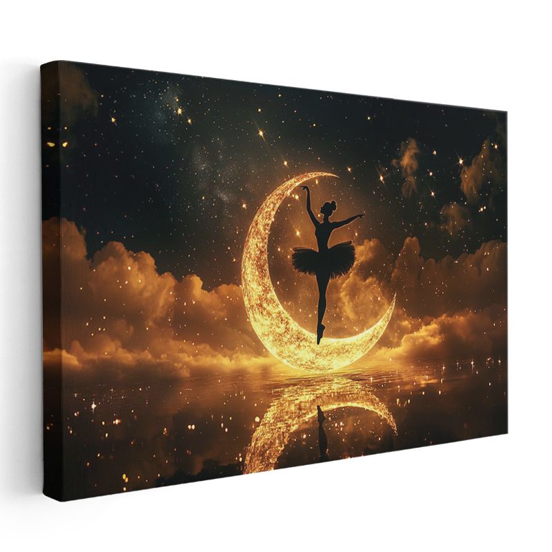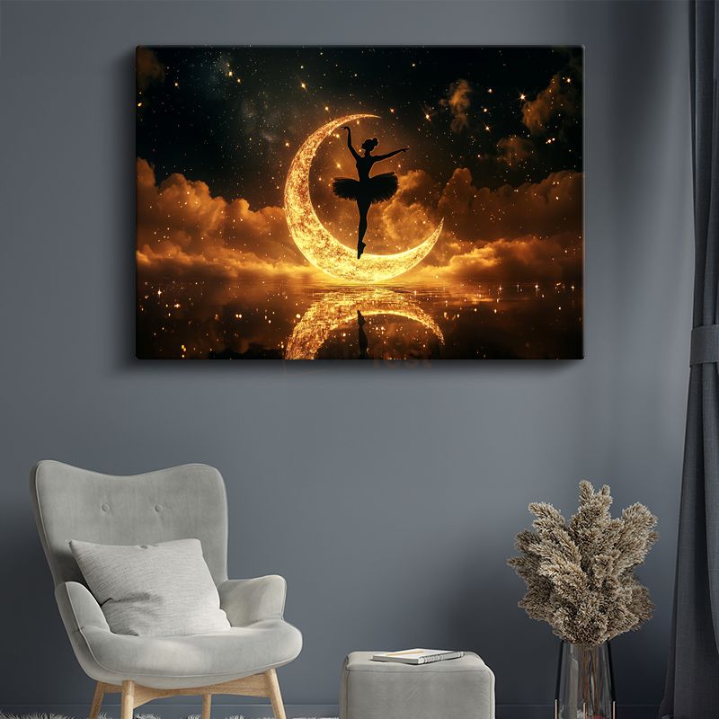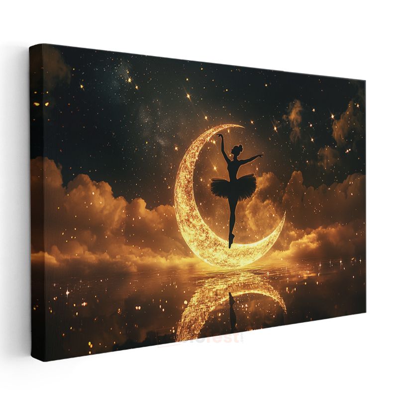 Ay Dansçısı - Altın Hilalde Süzülen Balerin Kanvas Tablo