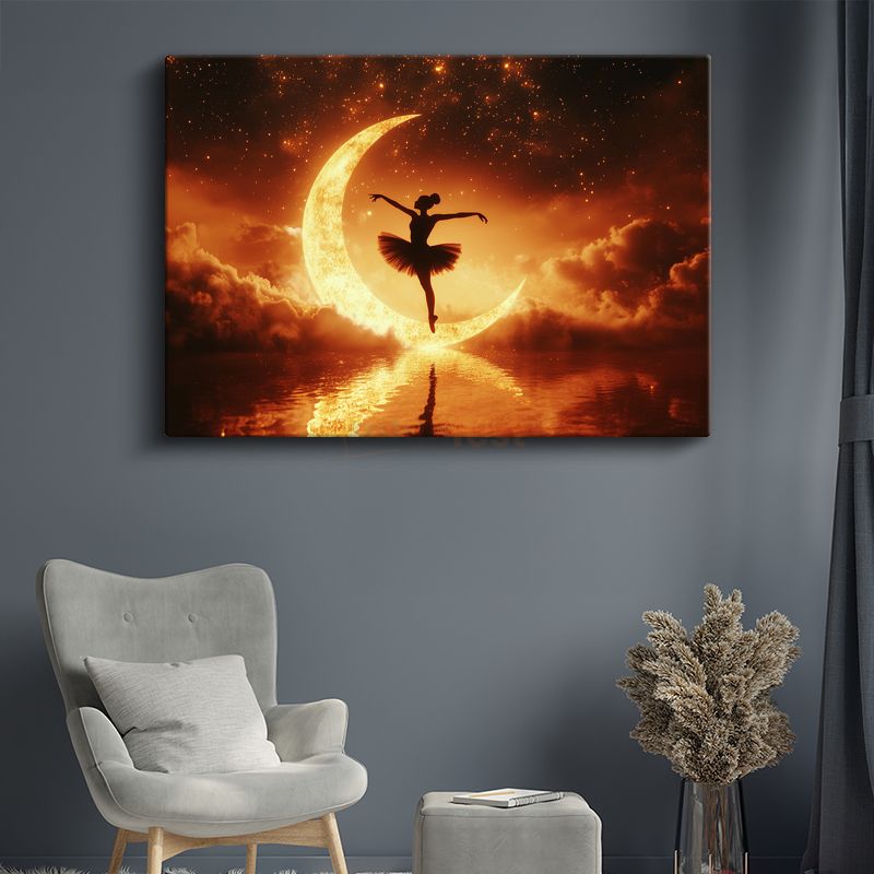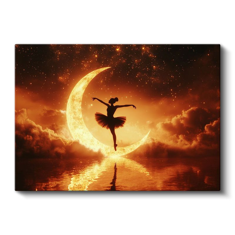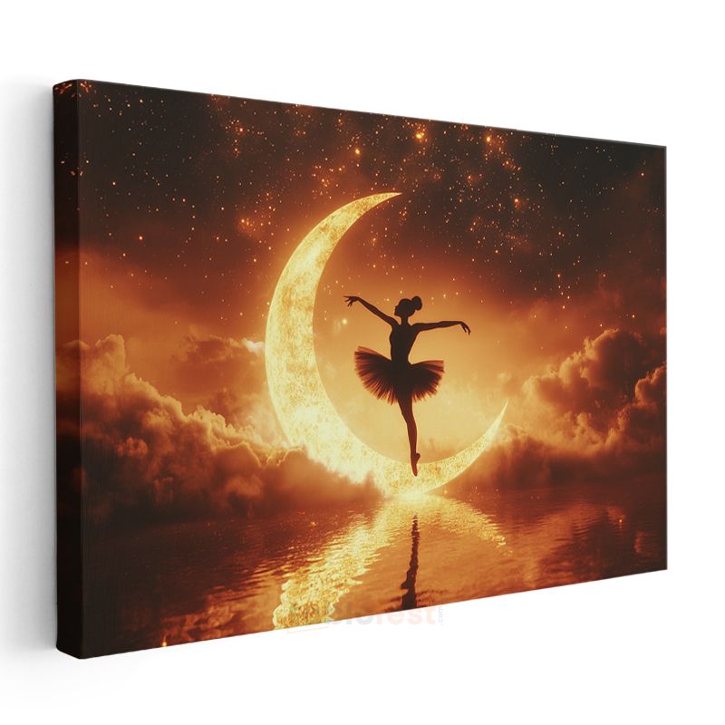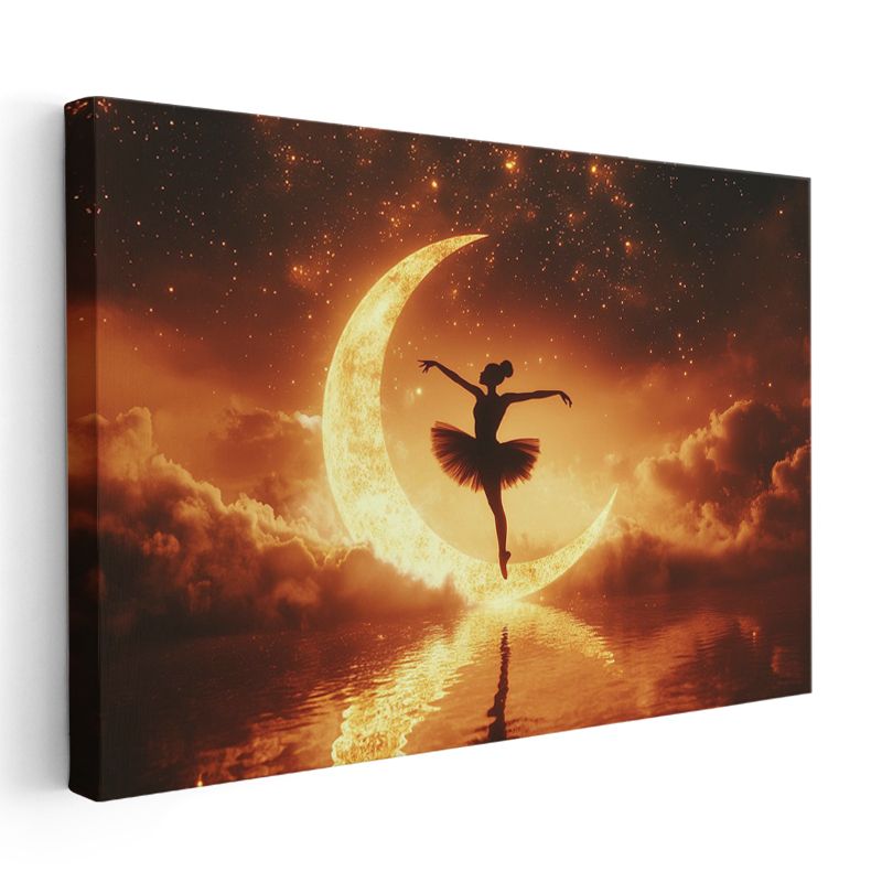 Ay Dansçısı - Altın Işıkta Süzülen Balet Silüeti Kanvas Tablo