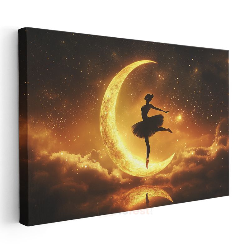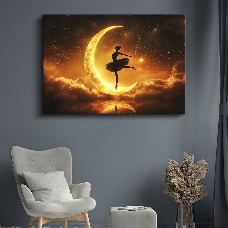 Ay Dansçısı - Gökyüzünün Altın Sahnesinde Zarif Silüet Kanvas Tablo