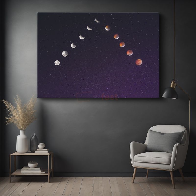 Ay Döngüsü - Gökyüzünde Dans Eden Evreler Kanvas Tablo