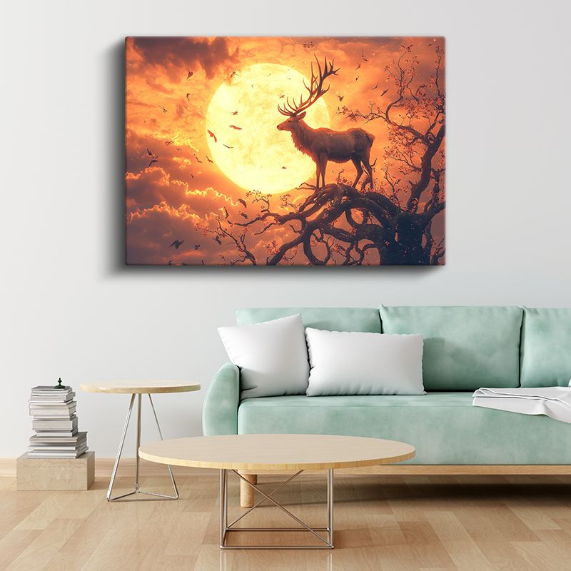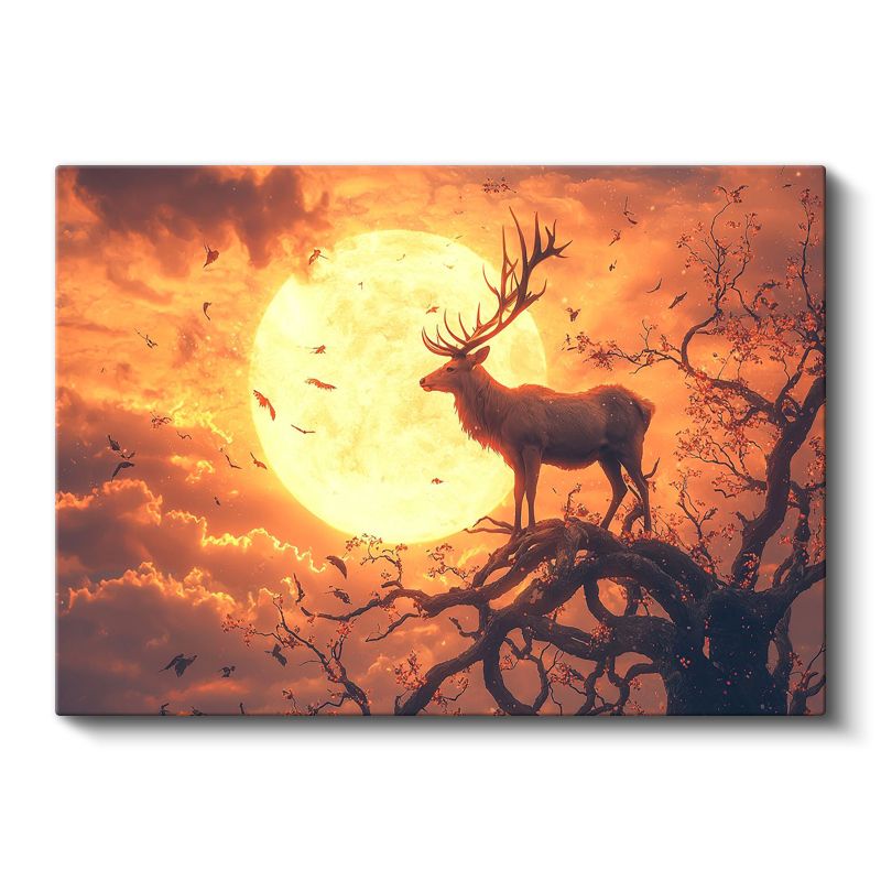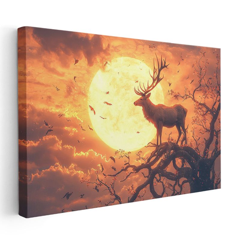 Ay Işığı Bekçisi - Dalda Duran Görkemli Geyik Kanvas Tablo