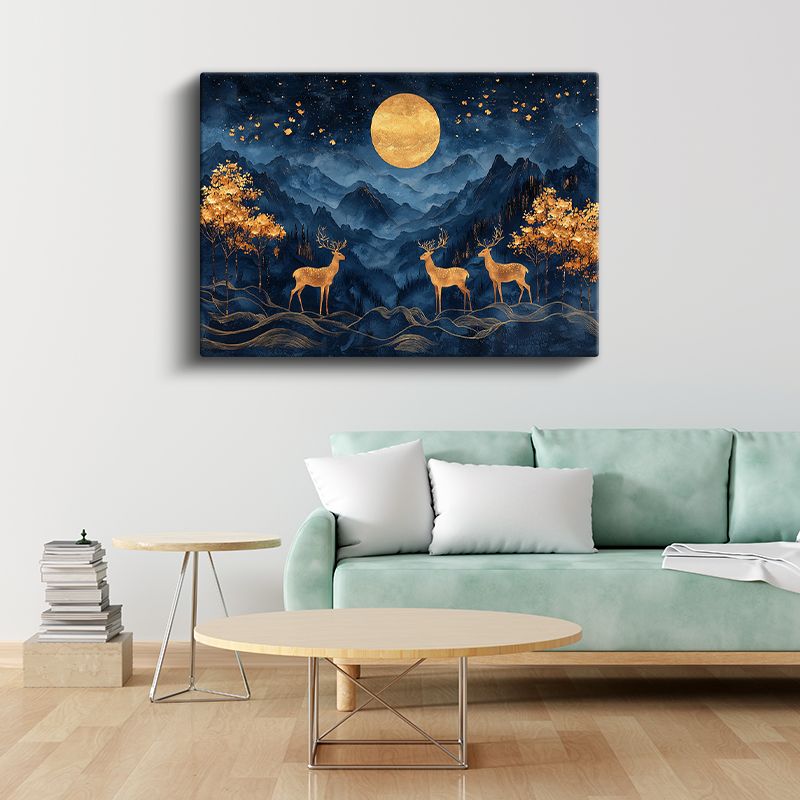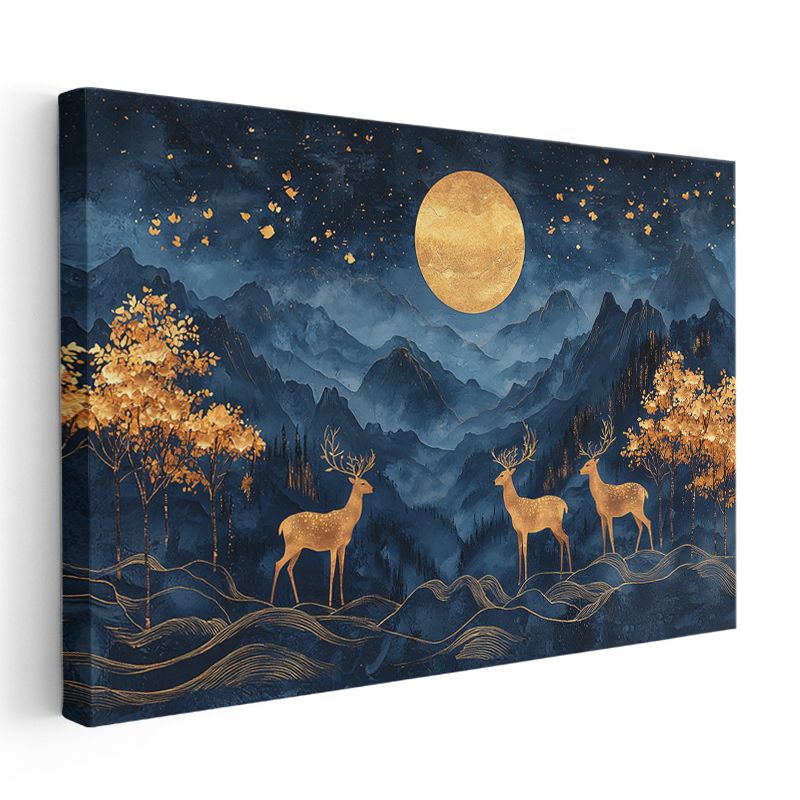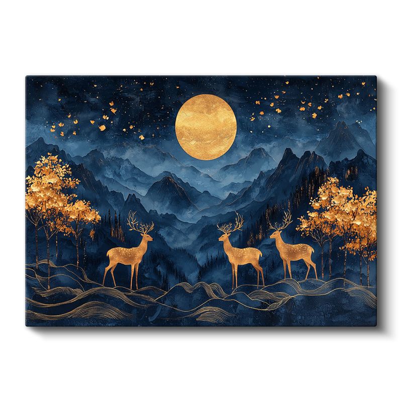 Ay Işığı Geyikleri - Gece Semasında Üçlü Silüet Kanvas Tablo