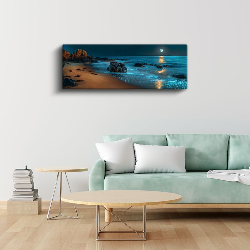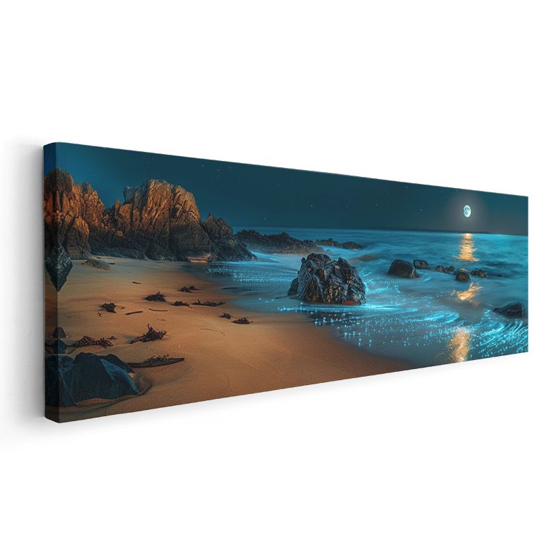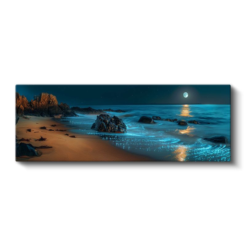 Ay Işığı Sahili - Büyüleyici Gece Deniz Manzarası Kanvas Tablo