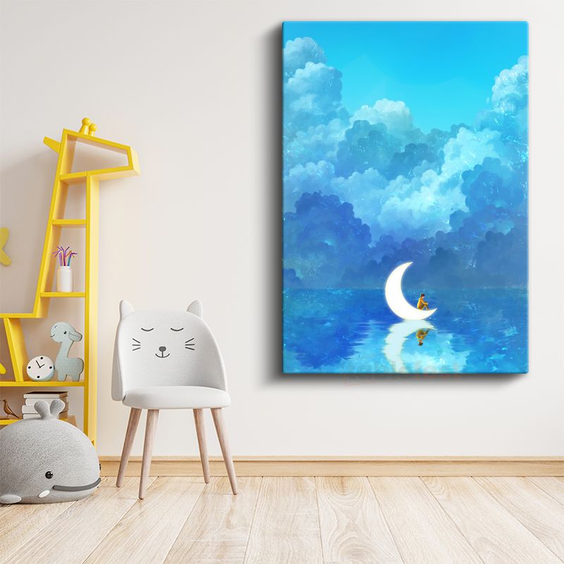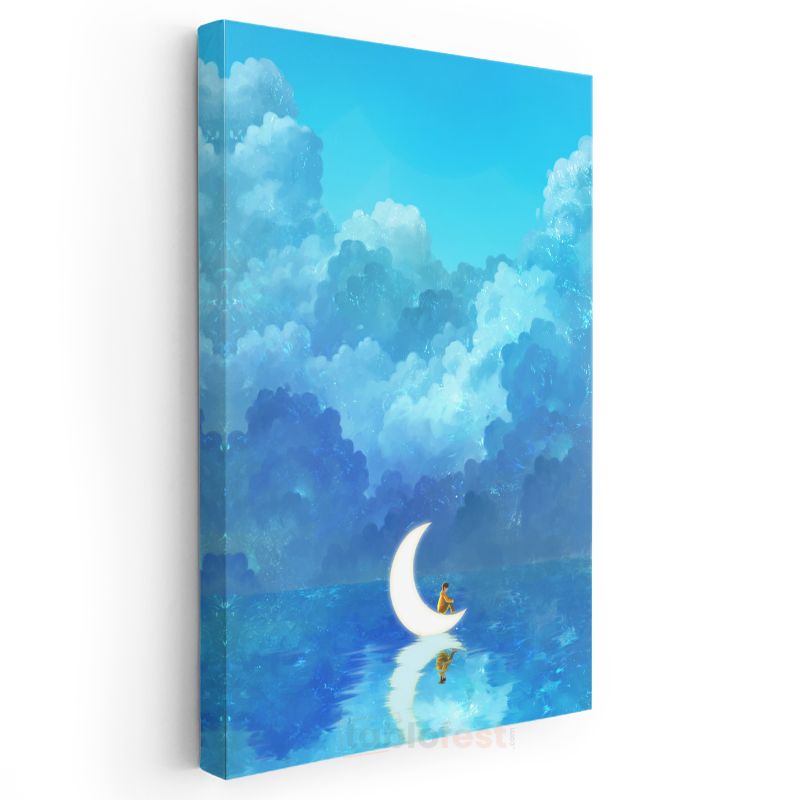 Ay Işığında Dinlenme - Mavi Sularda Huzurlu Anlar Kanvas Tablo