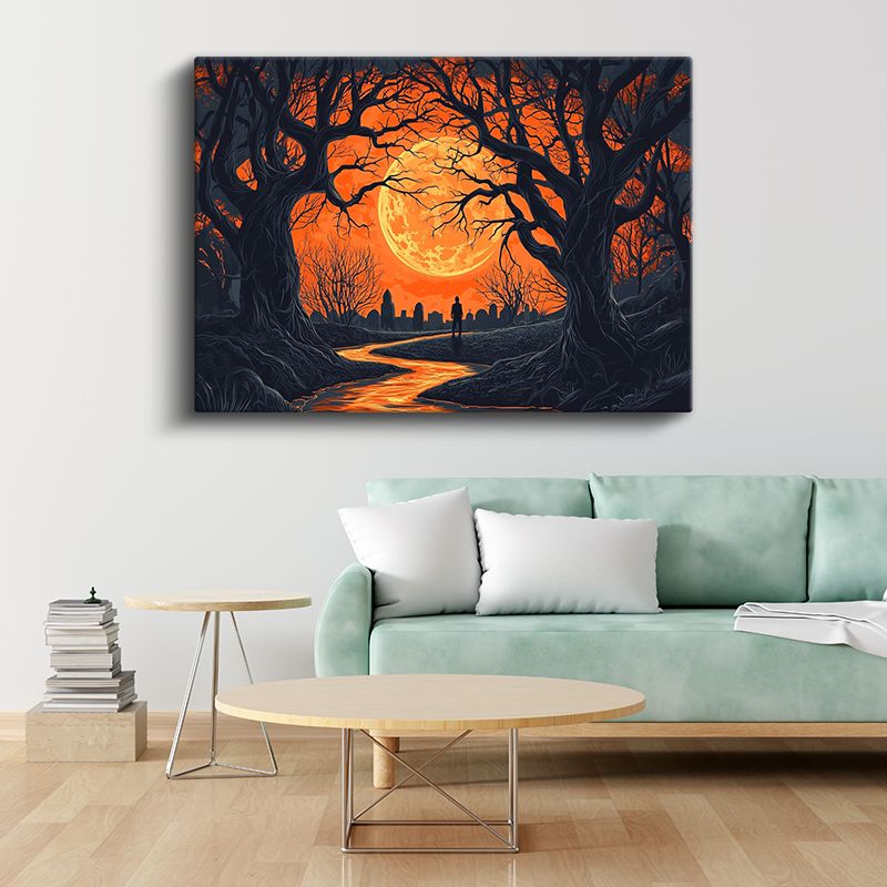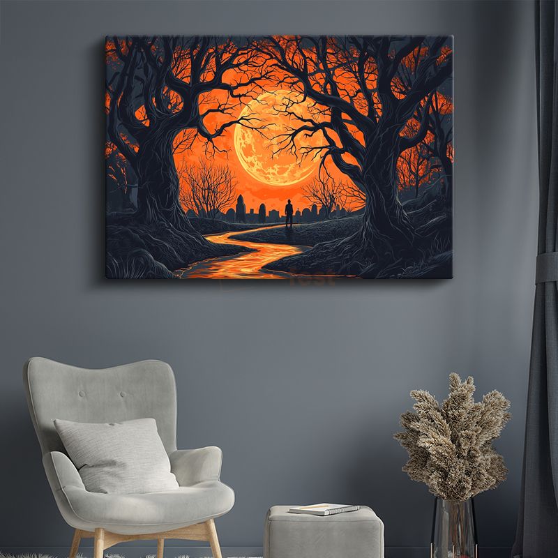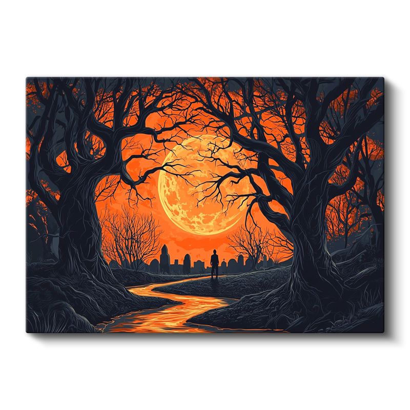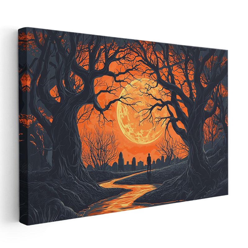 Ay Kapısı - Karanlık Ağaçlar Arasından Görünen Yalnız Yolcu Kanvas Tablo