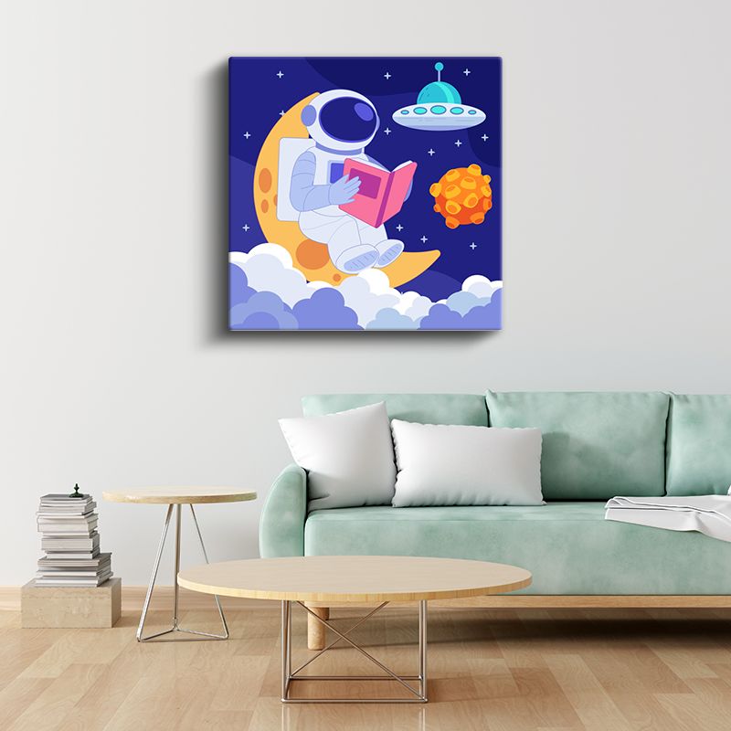 Ay Kütüphanesi - Kitap Okuyan Astronot Kanvas Tablo