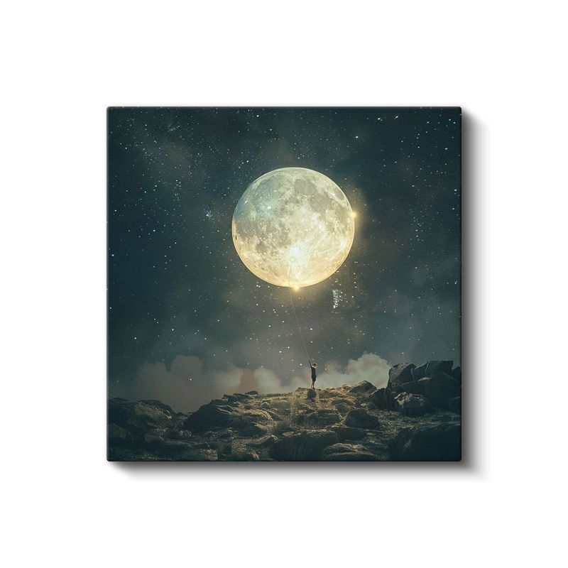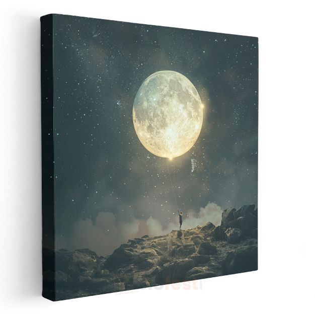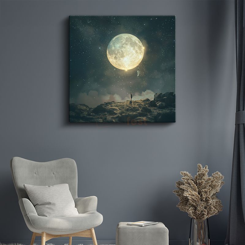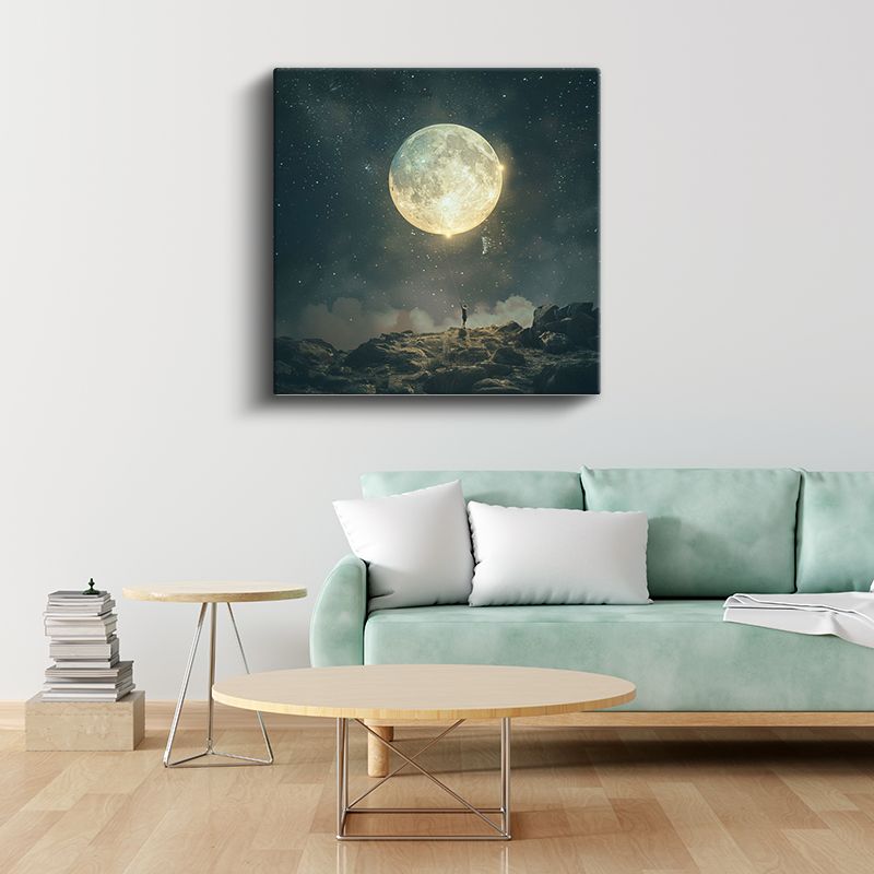 Ay Tutsaklığı - Göksel Cisimleri Avuçlayan Yalnız Silüet Kanvas Tablo