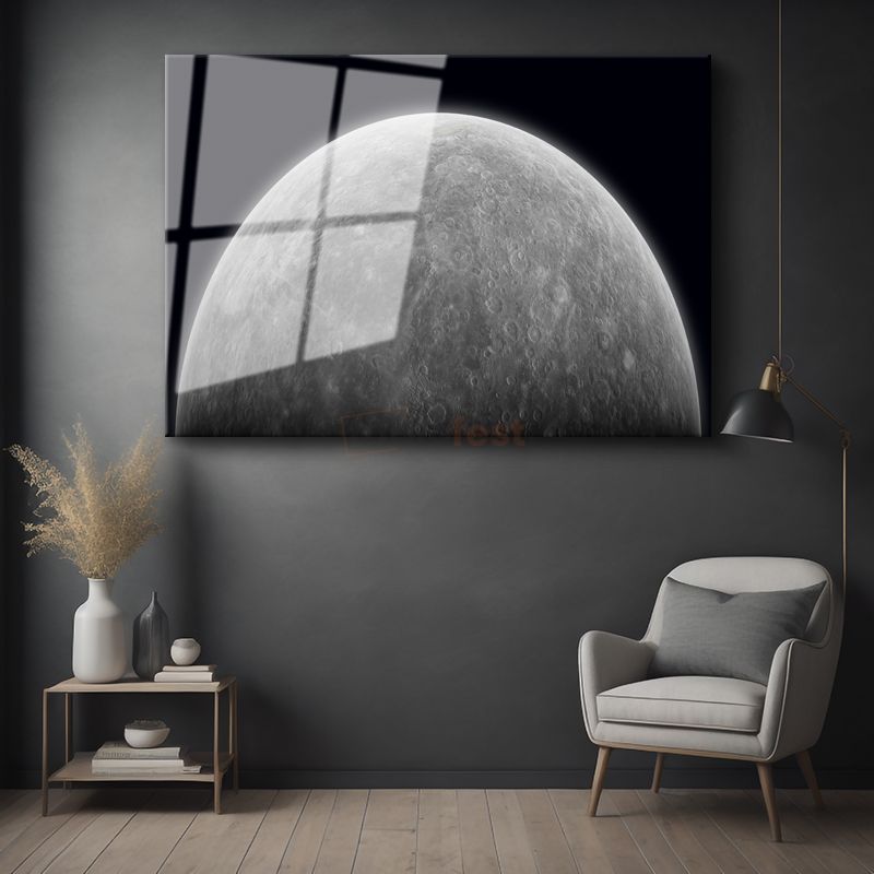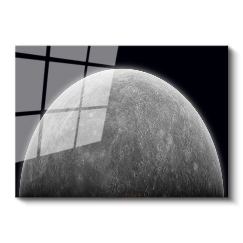 Ay Yüzeyi - Detaylı Krater Manzarası Cam Tablo