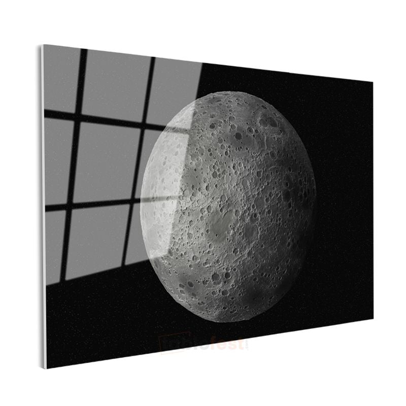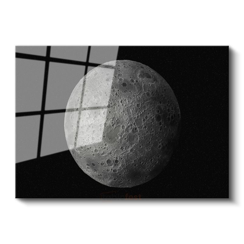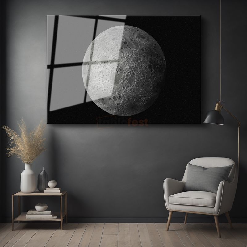 Ay Yüzeyi - Kraterlerle Dolu Gizemli Gökcismi Cam Tablo