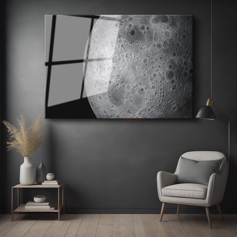 Ay Yüzeyi - Kraterli Detaylar Cam Tablo