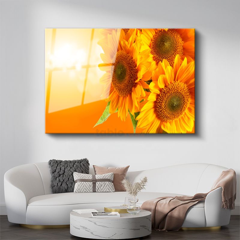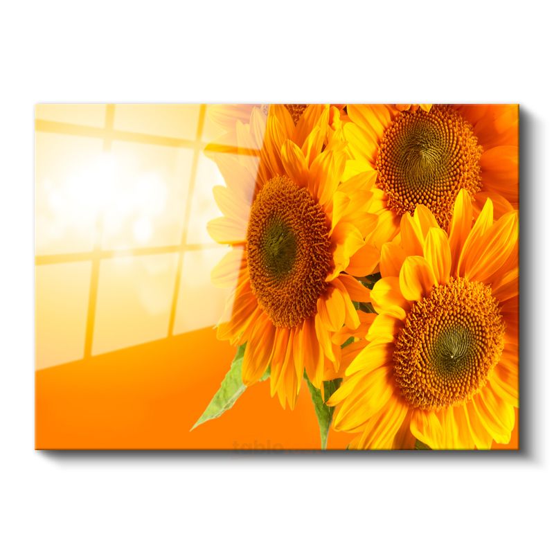 Ayçiçeği - Altın Sarısı Güneş Çiçekleri Cam Tablo