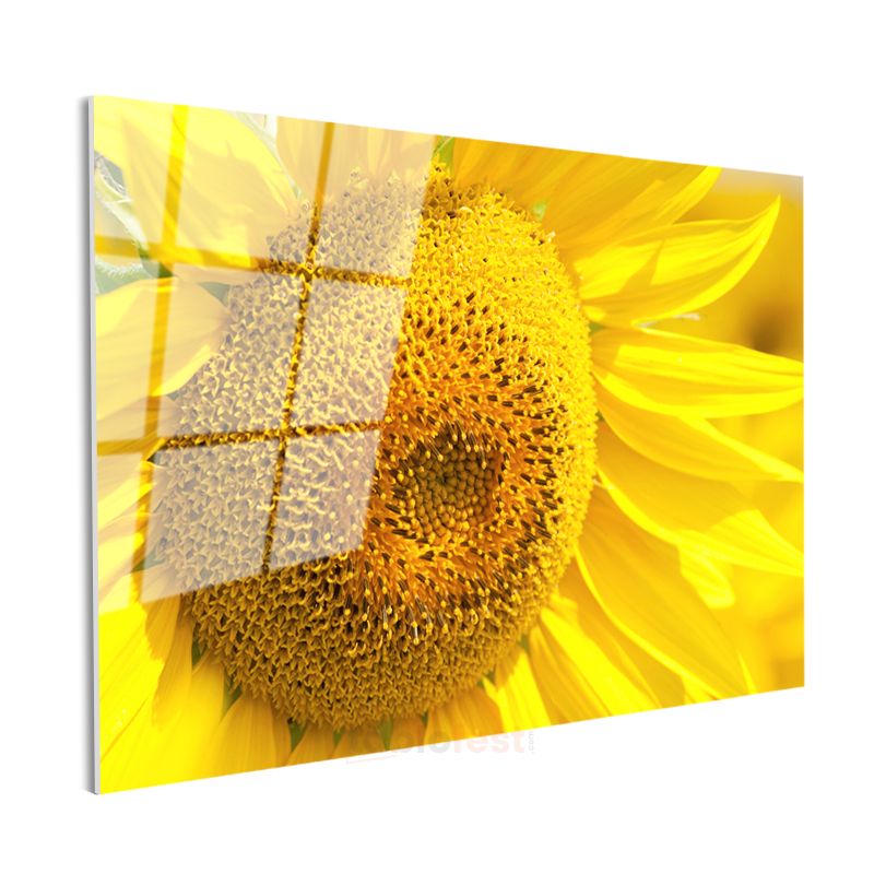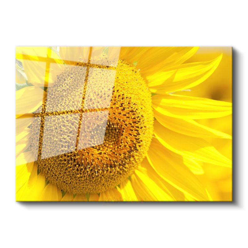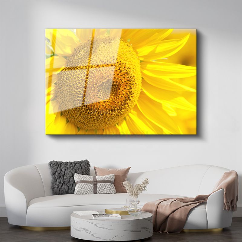 Ayçiçeği - Canlı Sarı Tonlu Detaylı Merkez Cam Tablo