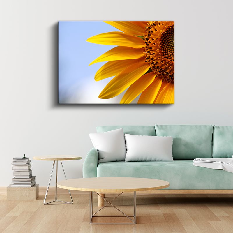 Ayçiçeği Detay - Mavi Gökyüzü Fonlu Yakın Plan Kanvas Tablo
