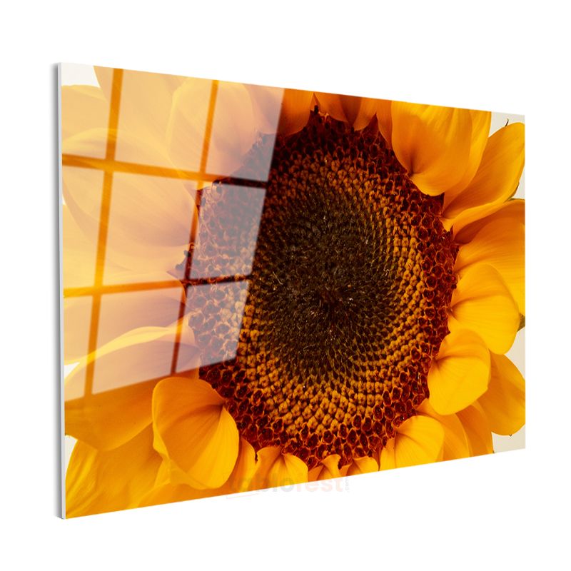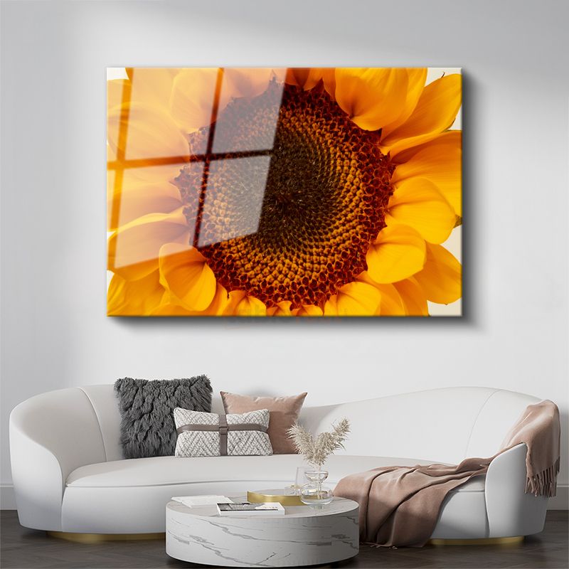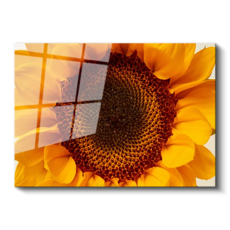 Ayçiçeği - Sarı Turuncu Makro Çekim Detayı Cam Tablo