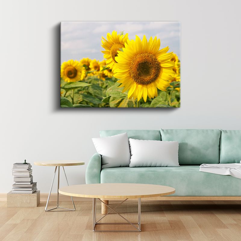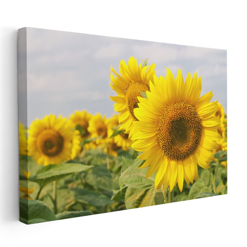 Ayçiçeği Tarlası - Mavi Gökyüzü Altında Güneş Çiçekleri Kanvas Tablo