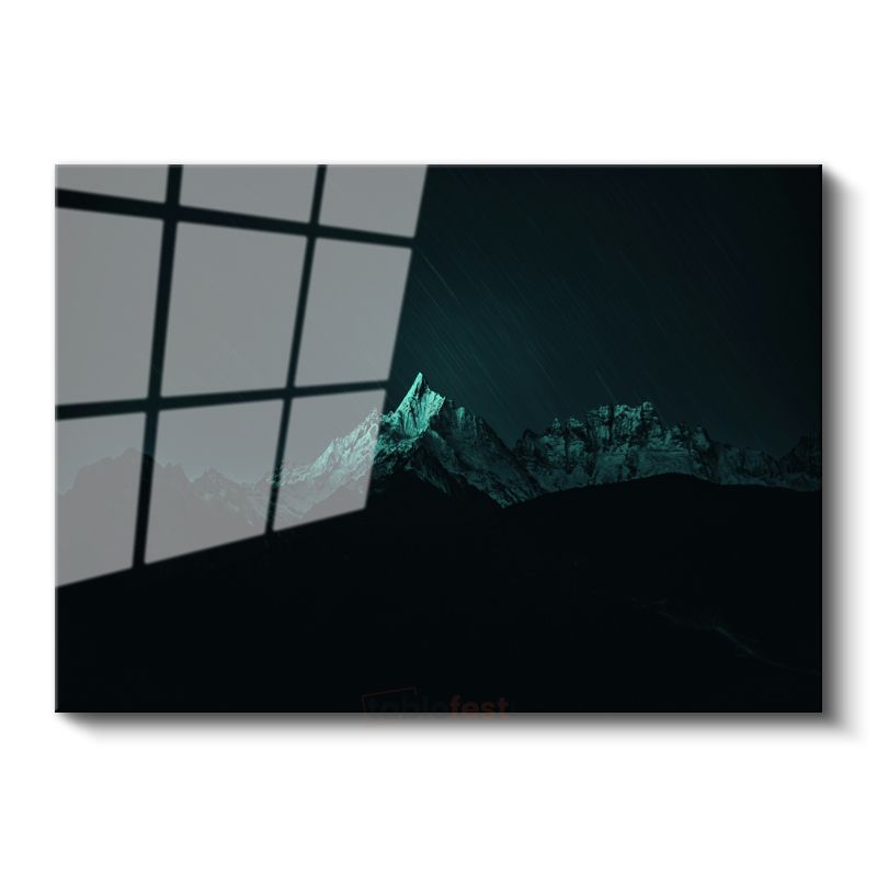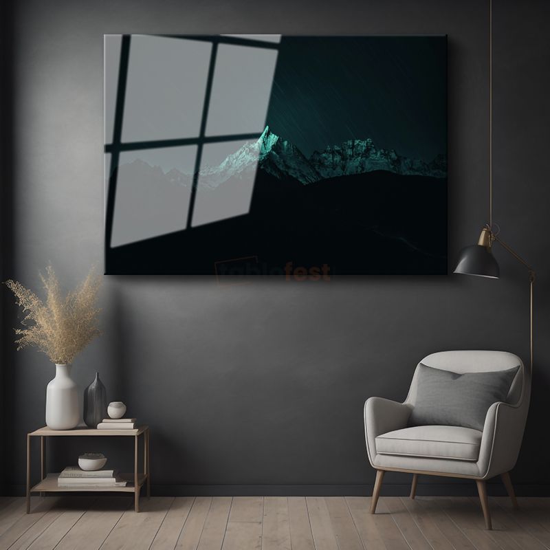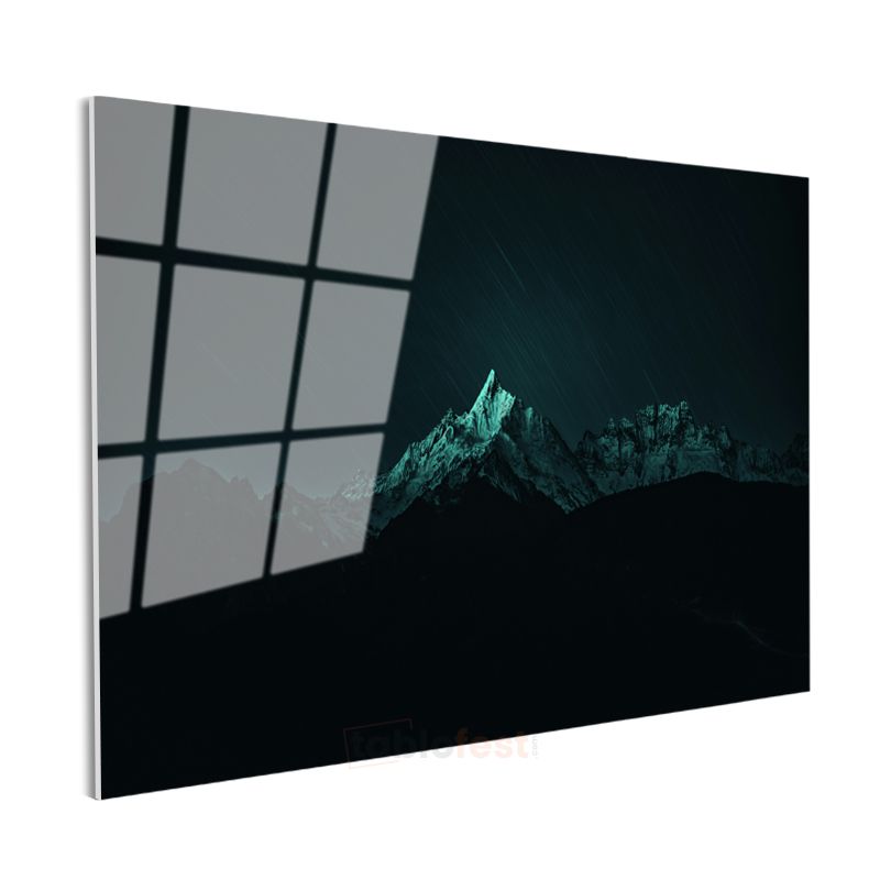 Aydınlık Zirve - Gecenin İçinde Parlayan Dağ Cam Tablo