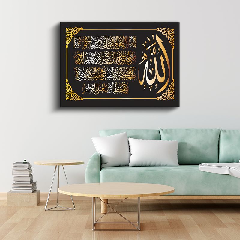 Ayetel Kürsi - Altın İşlemeli Koruyucu Ayet Kanvas Tablo