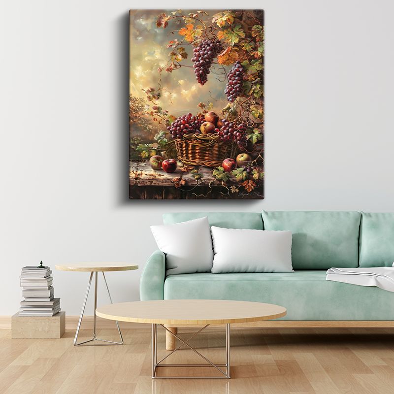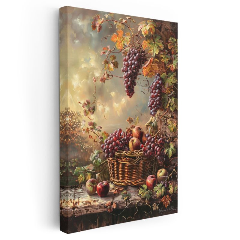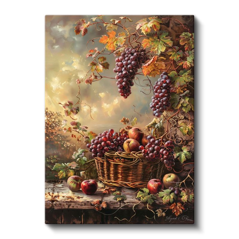 Bağ Bozumu - Klasik Üzüm ve Elma Natürmortu Kanvas Tablo