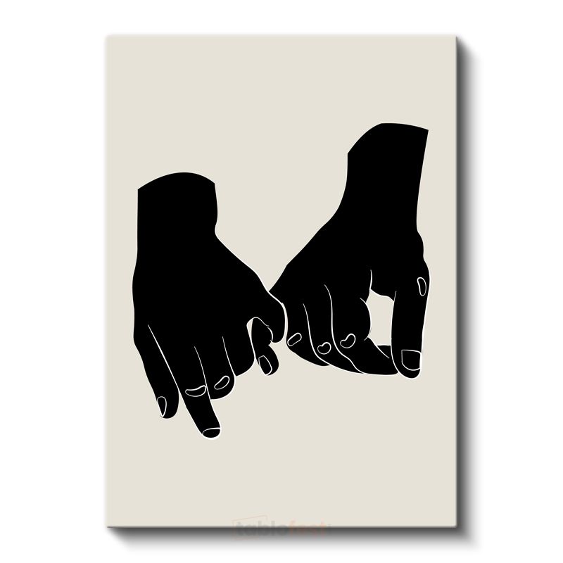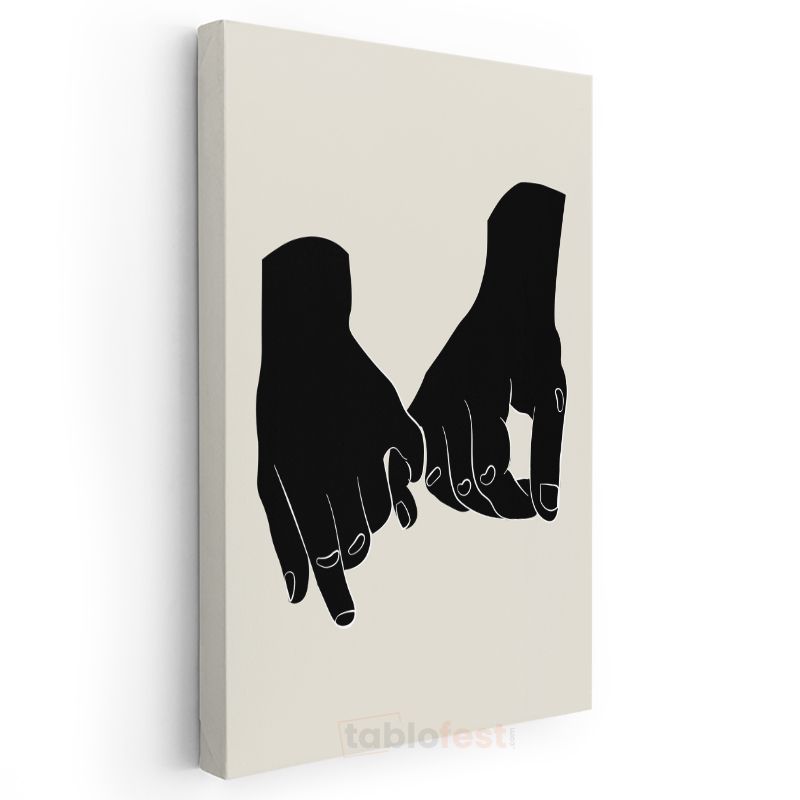 Bağlantı - Siyah Eller Silueti Minimalist Kanvas Tablo