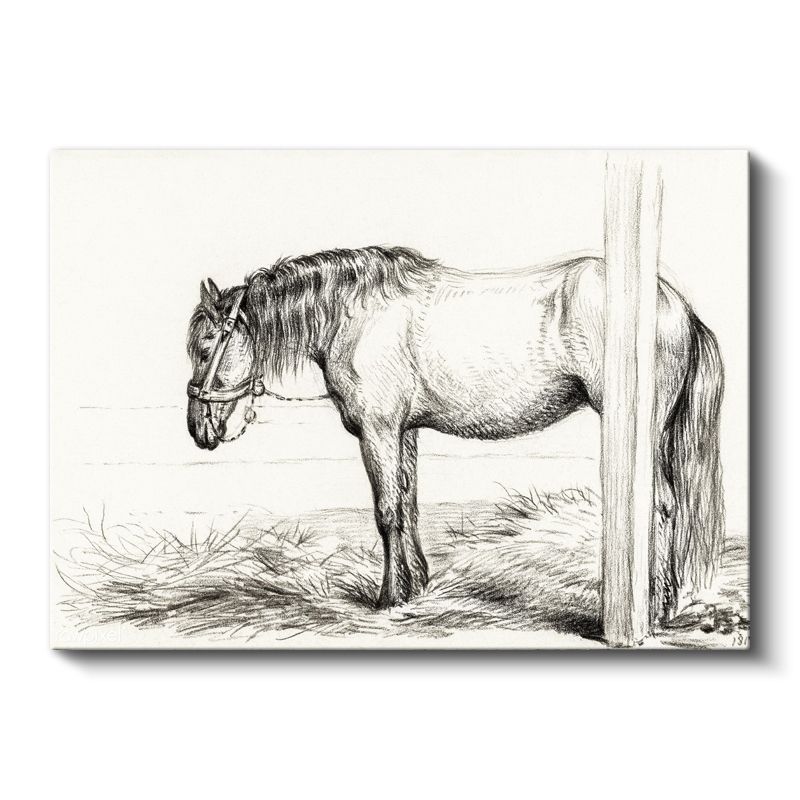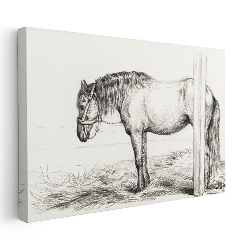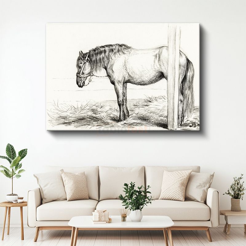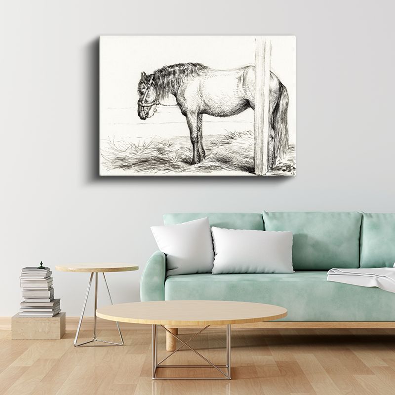 Bağlı At - Direğe Yaslanmış Çiftlik Hayvanı Kanvas Tablo