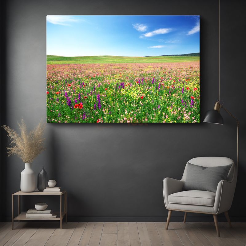 Bahar Çayırı - Renkli Çiçeklerle Bezeli Kır Manzarası Kanvas Tablo