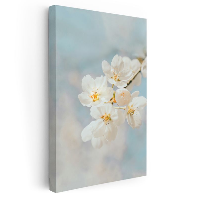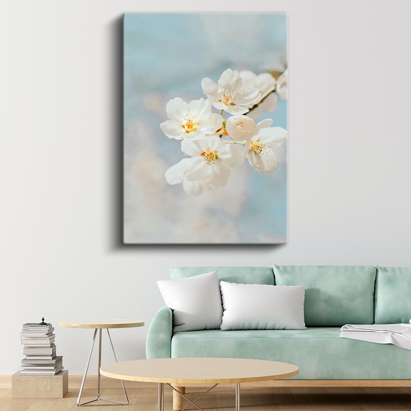 Bahar Çiçekleri - Mavi Gökyüzünde Beyaz Kiraz Çiçekleri Kanvas Tablo