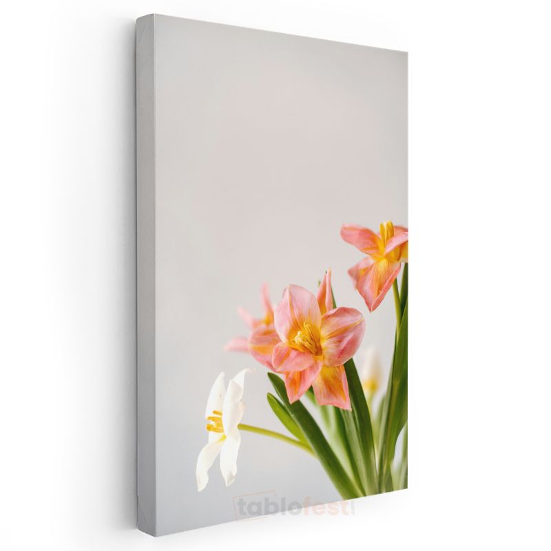 Bahar Çiçekleri - Minimal Beyaz Zeminde Pembe Laleler Kanvas Tablo