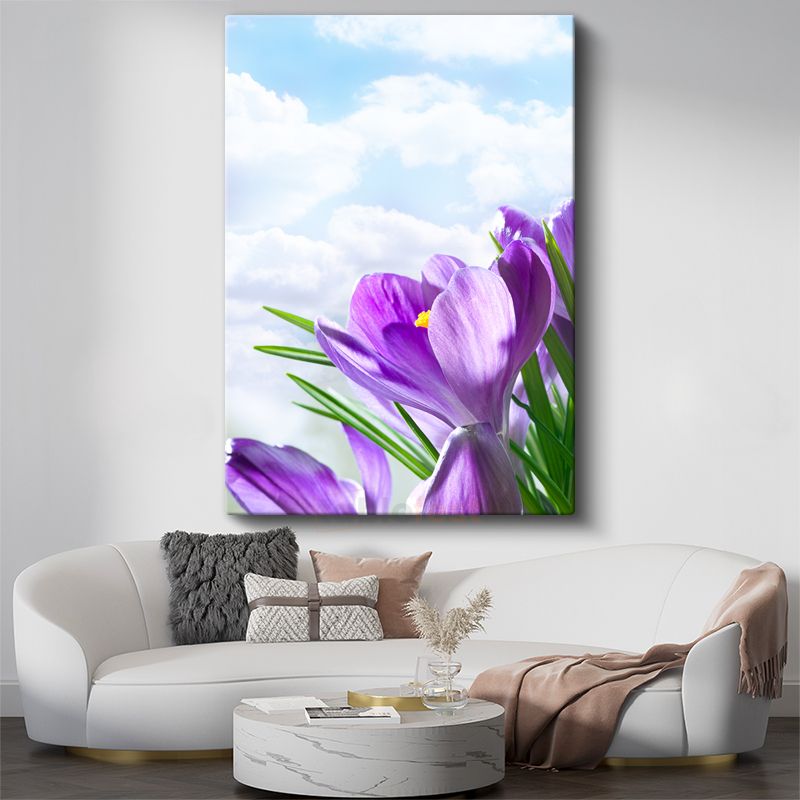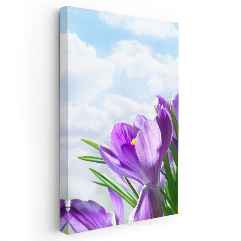 Bahar Çiğdemleri - Gökyüzü Fonunda Mor Çiçekler Kanvas Tablo