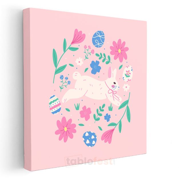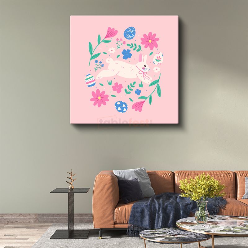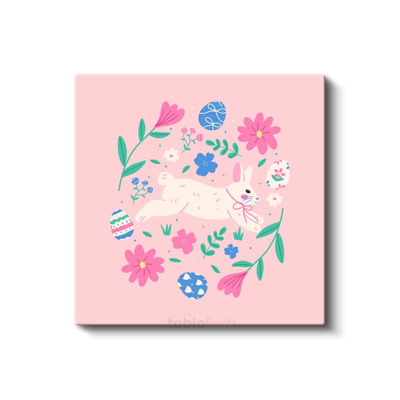 Bahar Tavşanı - Çiçekler ve Paskalya Desenleri Kanvas Tablo
