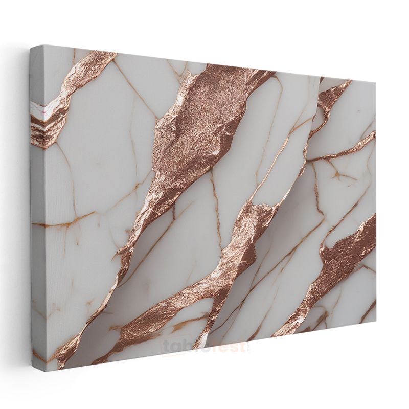 Bakır Çatlaklar - Lüks Mermer Dokusu Soyut Kanvas Tablo