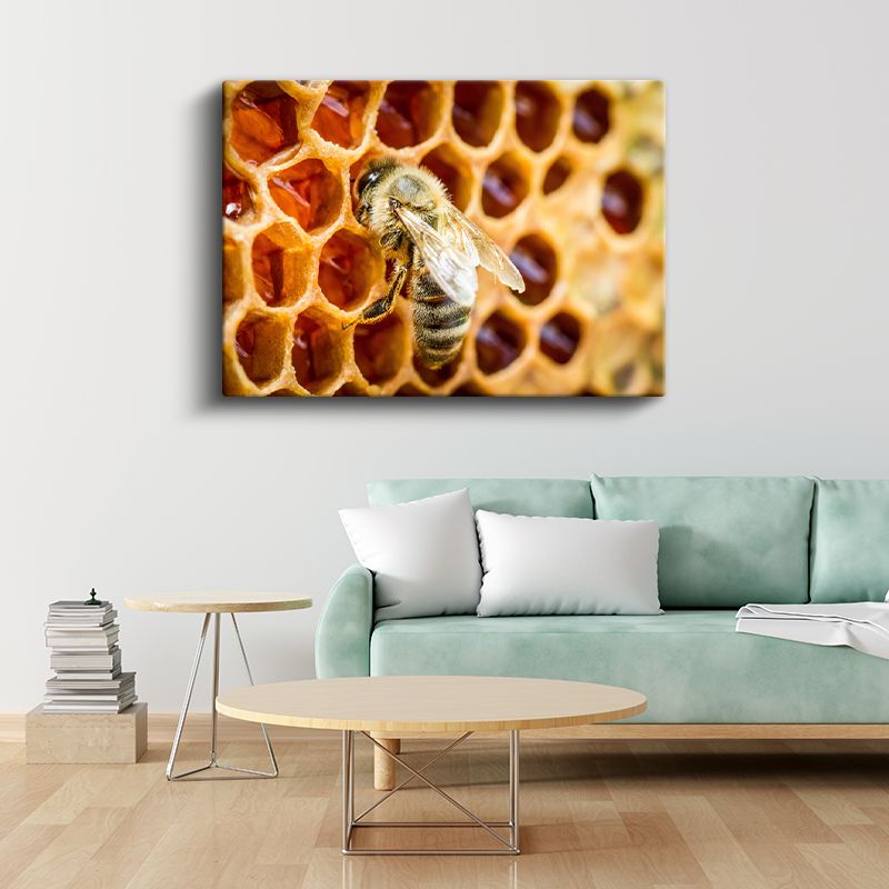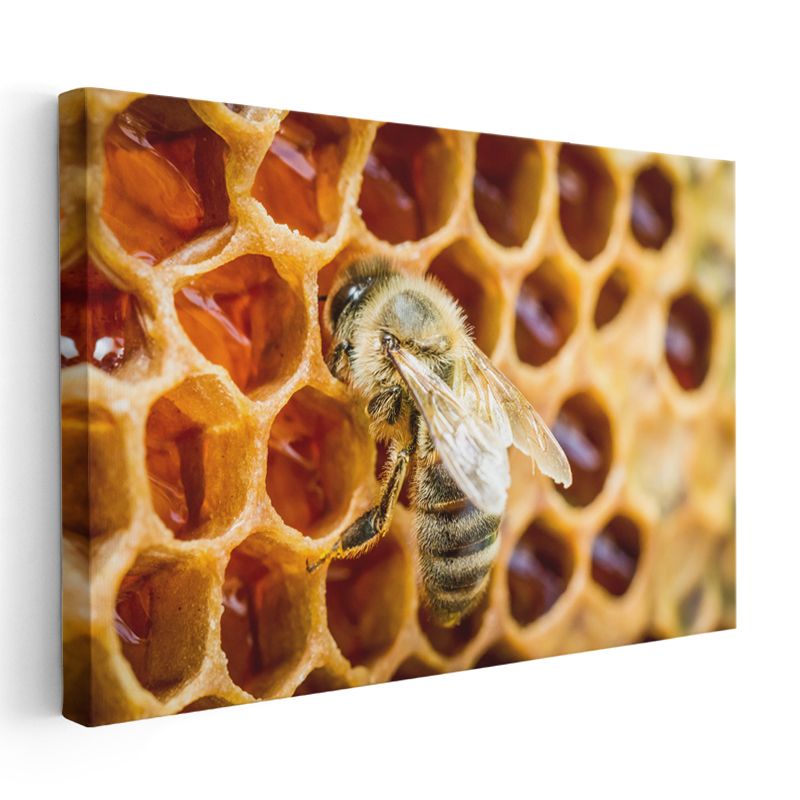 Bal Arısı - Petek Üzerinde Çalışkan İşçi Kanvas Tablo