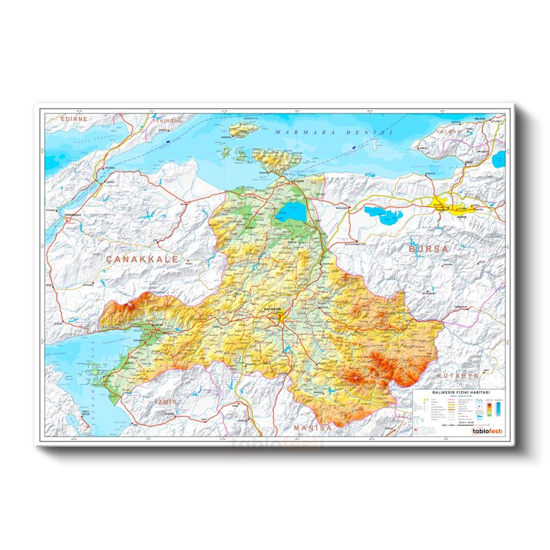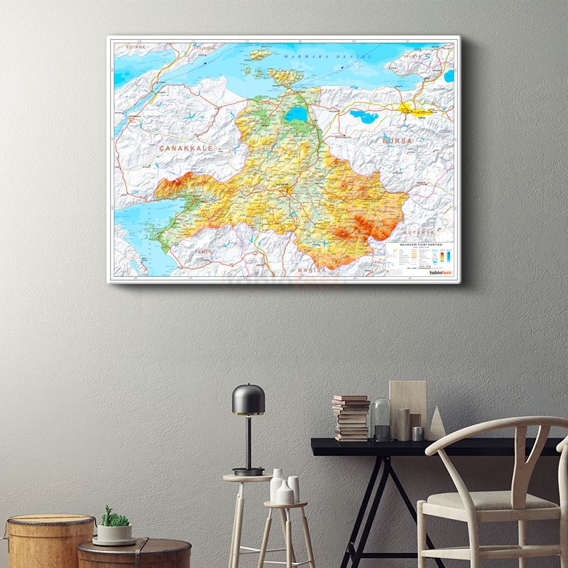 Balıkesir - Fiziki Haritası Kanvas Tablo