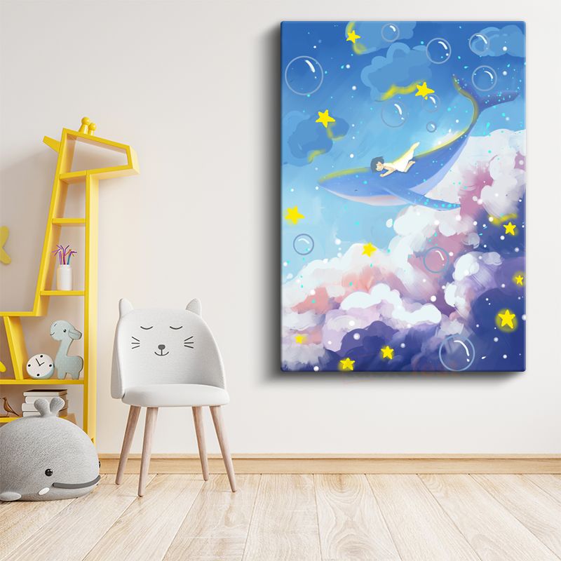 Balina Sırtında Yolculuk - Yıldızlı Gökyüzünde Macera Kanvas Tablo