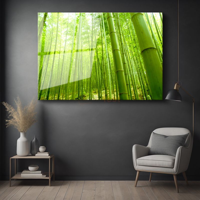 Bambu Ormanı - Canlı Yeşil Tonlarıyla Doğanın Huzuru Cam Tablo