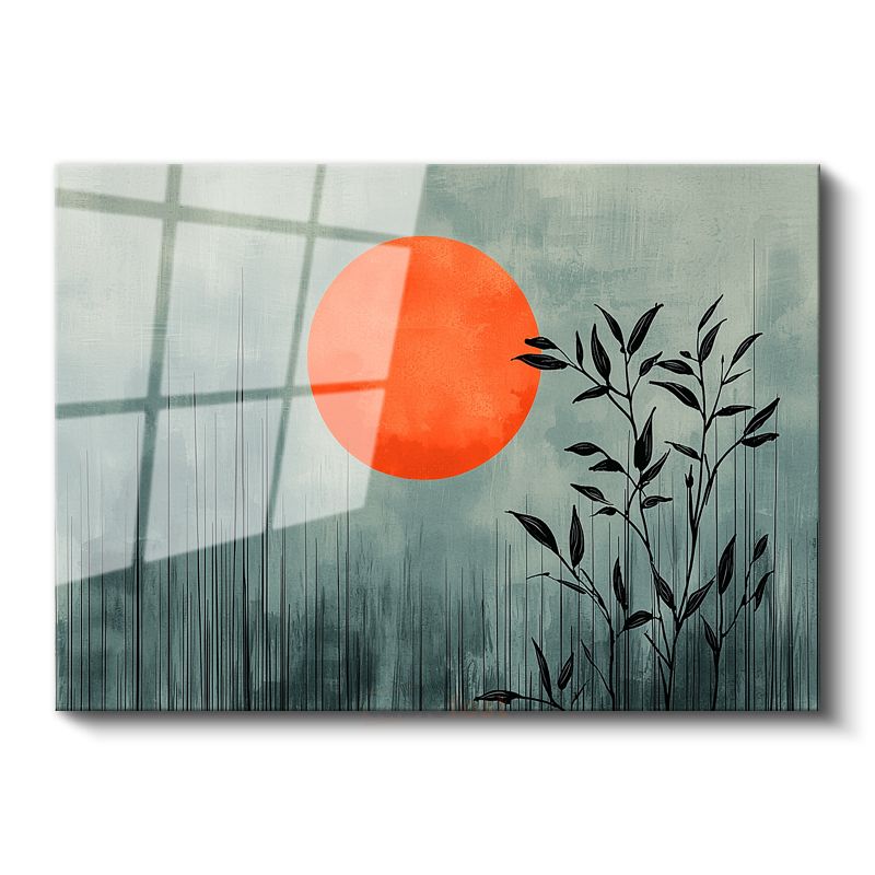 Bambu Silueti - Minimalist Doğu Esintili Turuncu Güneş Cam Tablo