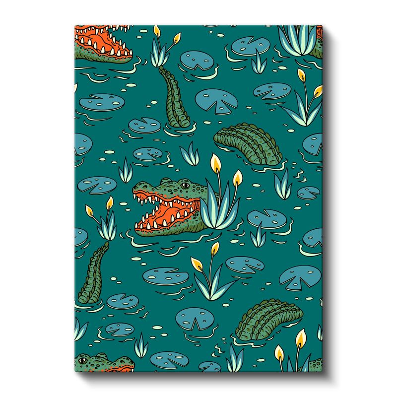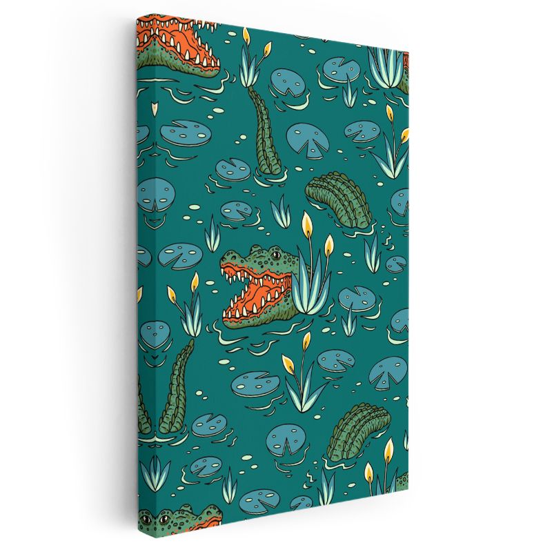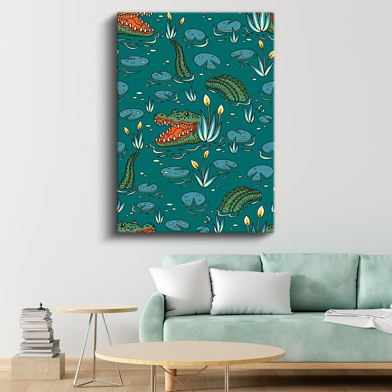 Bataklık Masalı - Timsah ve Nilüfer Desenleri Kanvas Tablo