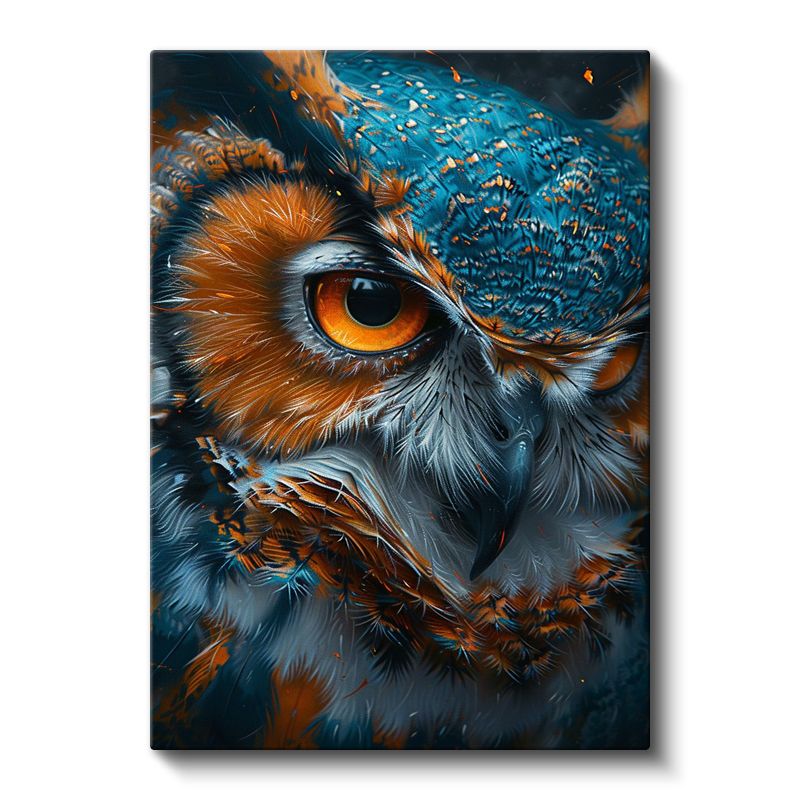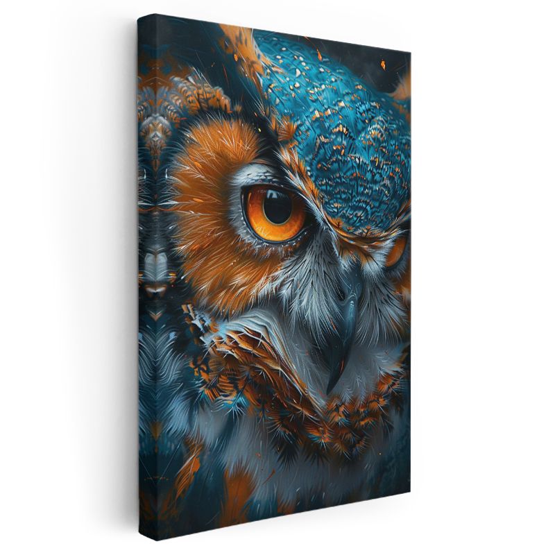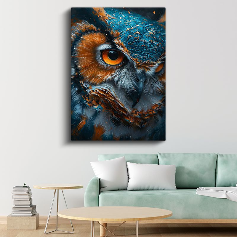 Baykuş Bakışı - Mavi Turuncu Tüylü Gece Avcısı Kanvas Tablo