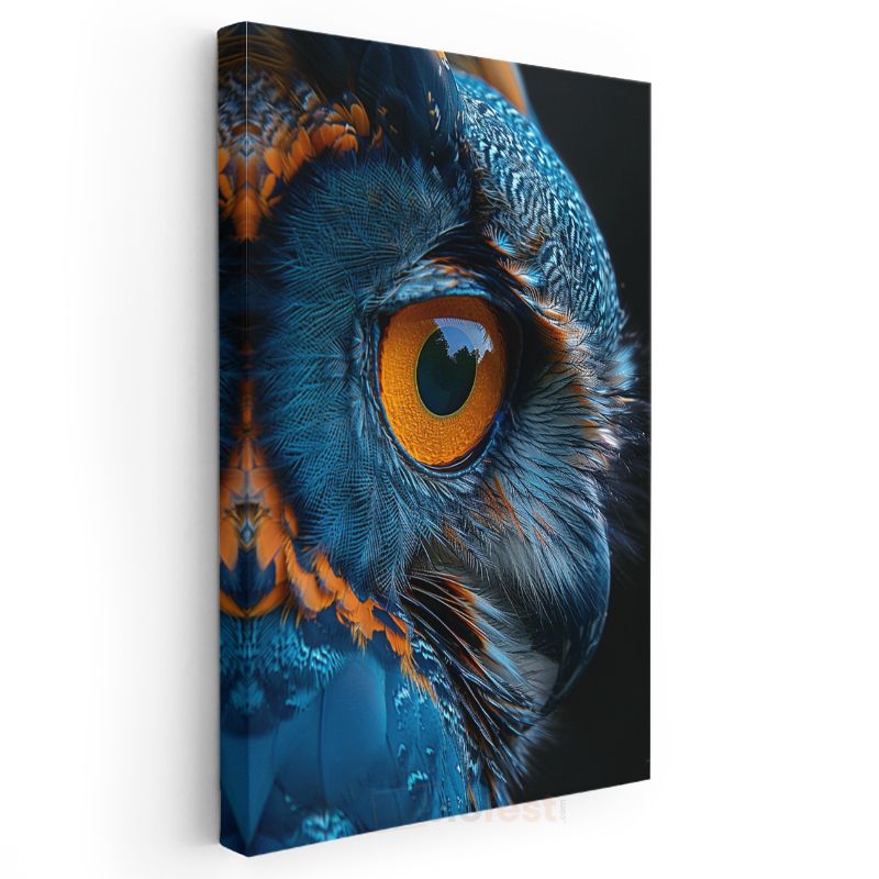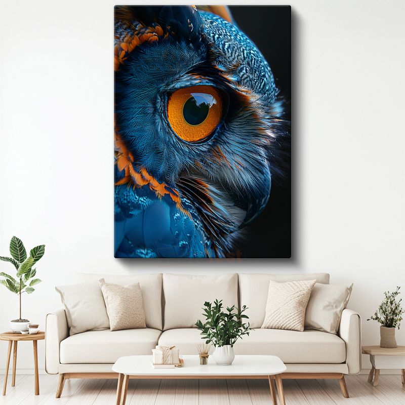 Baykuş Gözü - Mavi Turuncu Tüylerde Keskin Bakış Kanvas Tablo
