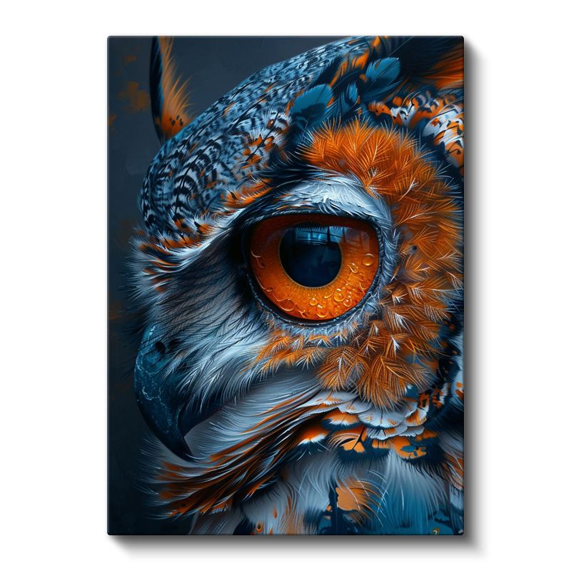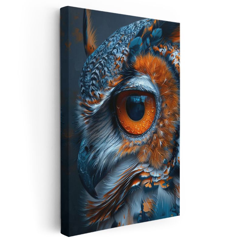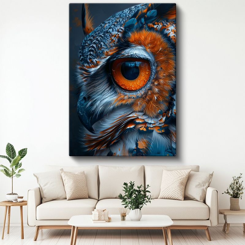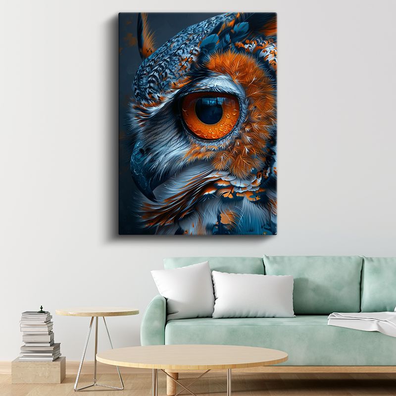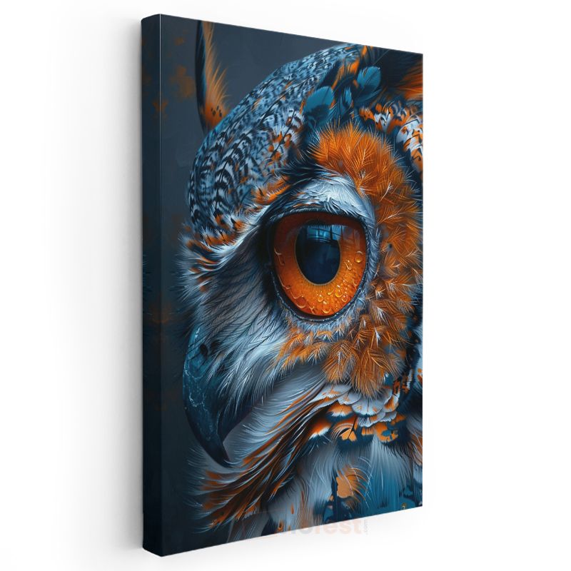 Baykuş Gözü - Mavi Turuncu Tüylerde Keskin Bakış Kanvas Tablo