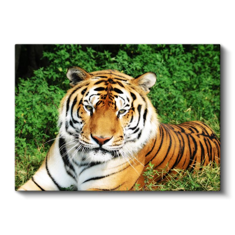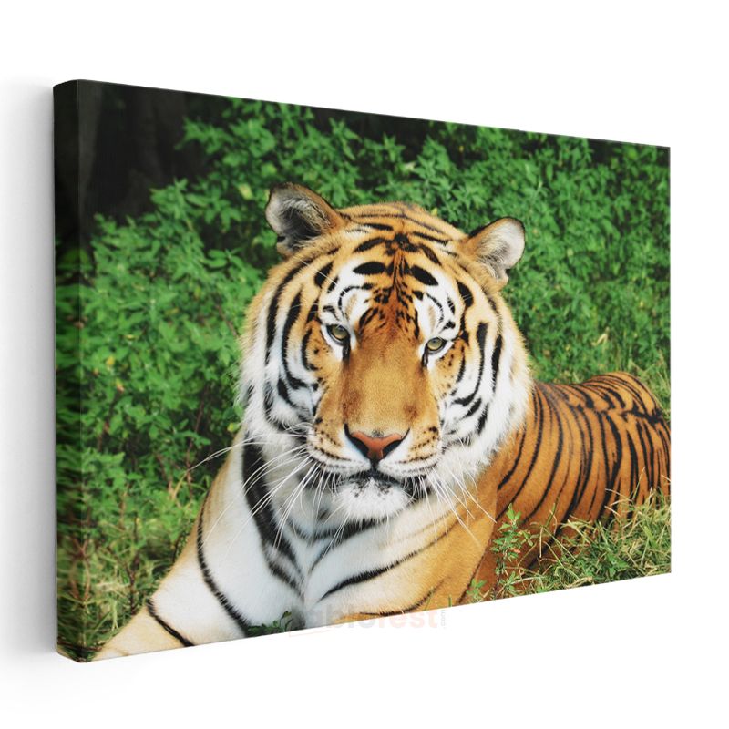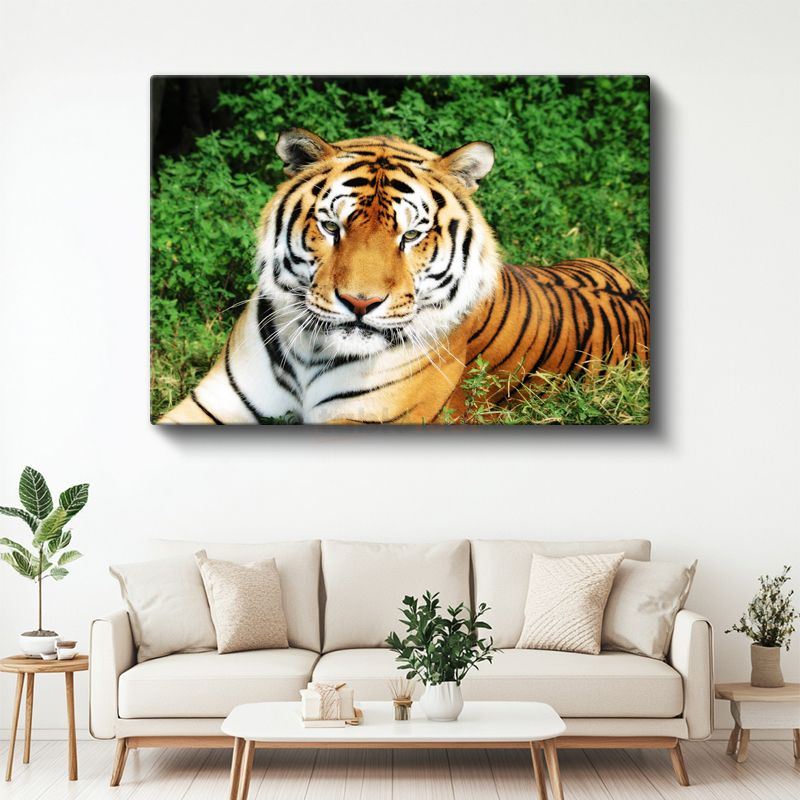 Bengal Kaplanı - Yeşil Otlakta Dinlenen Yırtıcı Kanvas Tablo