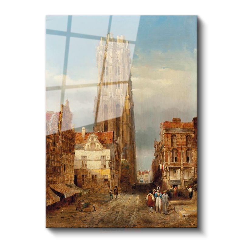 Bernardo Bellotto - Gotik Katedral Şehir Manzarası Cam Tablo