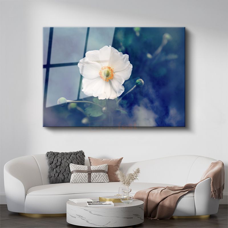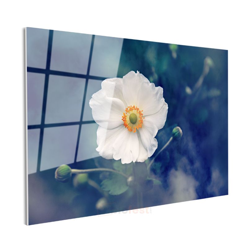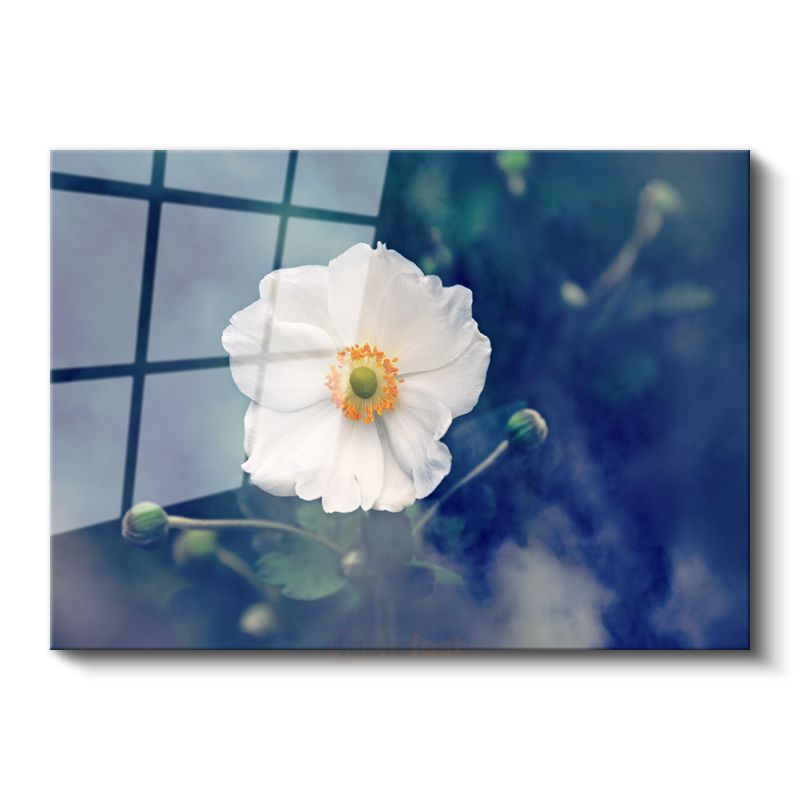 Beyaz Anemon - Turuncu Merkezli Zarif Çiçek Cam Tablo