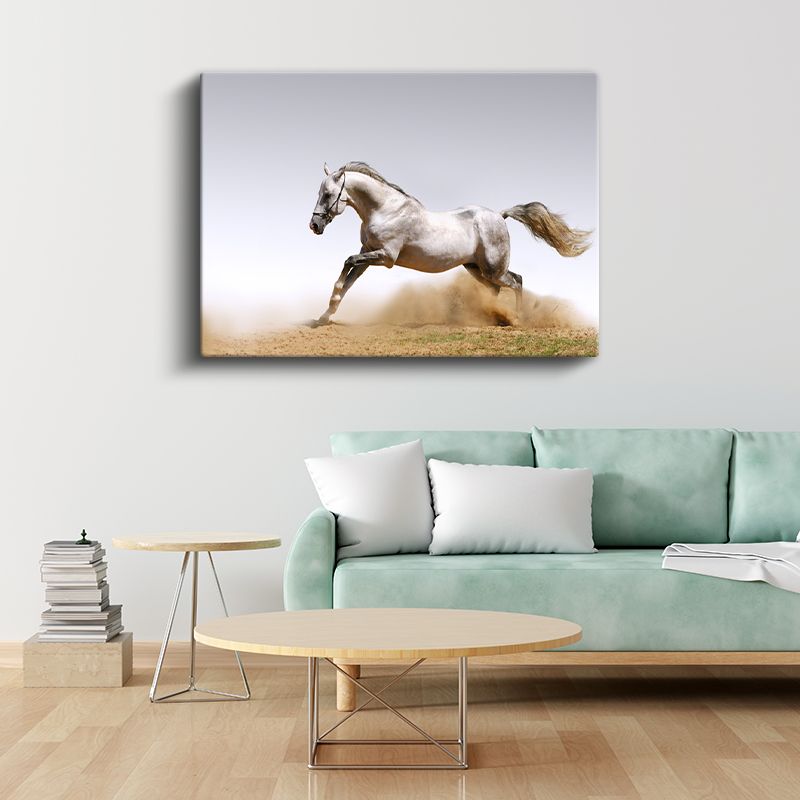 Beyaz At - Kumda Dans Eden Asil Ruh Kanvas Tablo