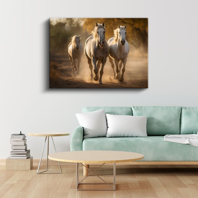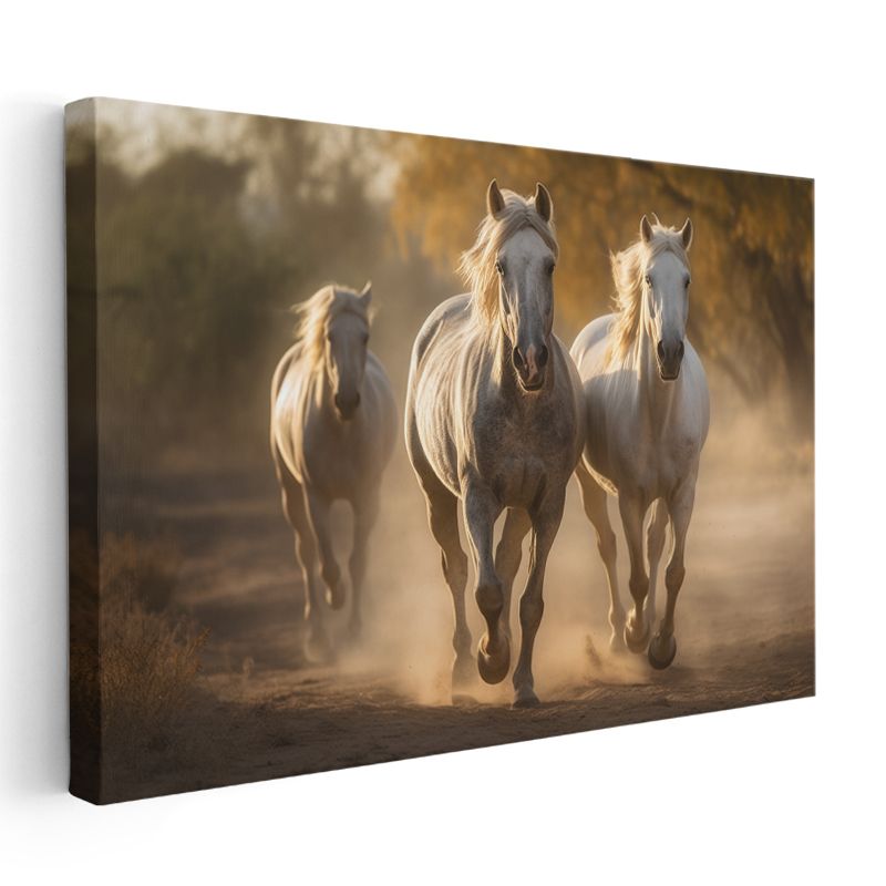 Beyaz At Sürüsü - Altın Tozlu Yolda Koşu Kanvas Tablo